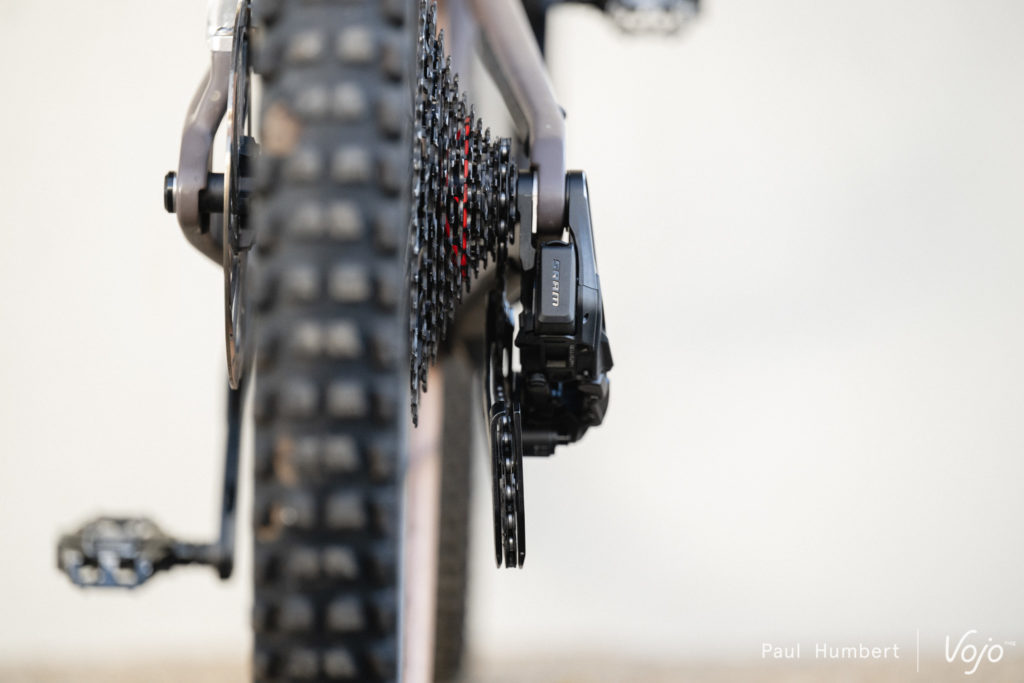 « Plus robuste« , « quand on parle de solidité et de robustesse »… La solidité du dérailleur, mais aussi du système en général, était en effet l’un des principaux objectifs de Sram lors du développement de cette nouvelle transmission. L’un des principaux mais pas le seul, puisqu’il y en avait deux autres : la facilité d’installation et de réglage et la qualité des changements de rapport sous charge.