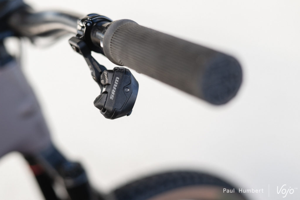 Il se passe beaucoup de choses à l’arrière… mais il y a aussi de la nouveauté à l’avant ! En plus de la transmission entièrement revue, Sram présente en effet une toute nouvelle commande, par ailleurs le seul composant de tout ce lancement à être compatible avec les anciens groupes Eagle AXS.