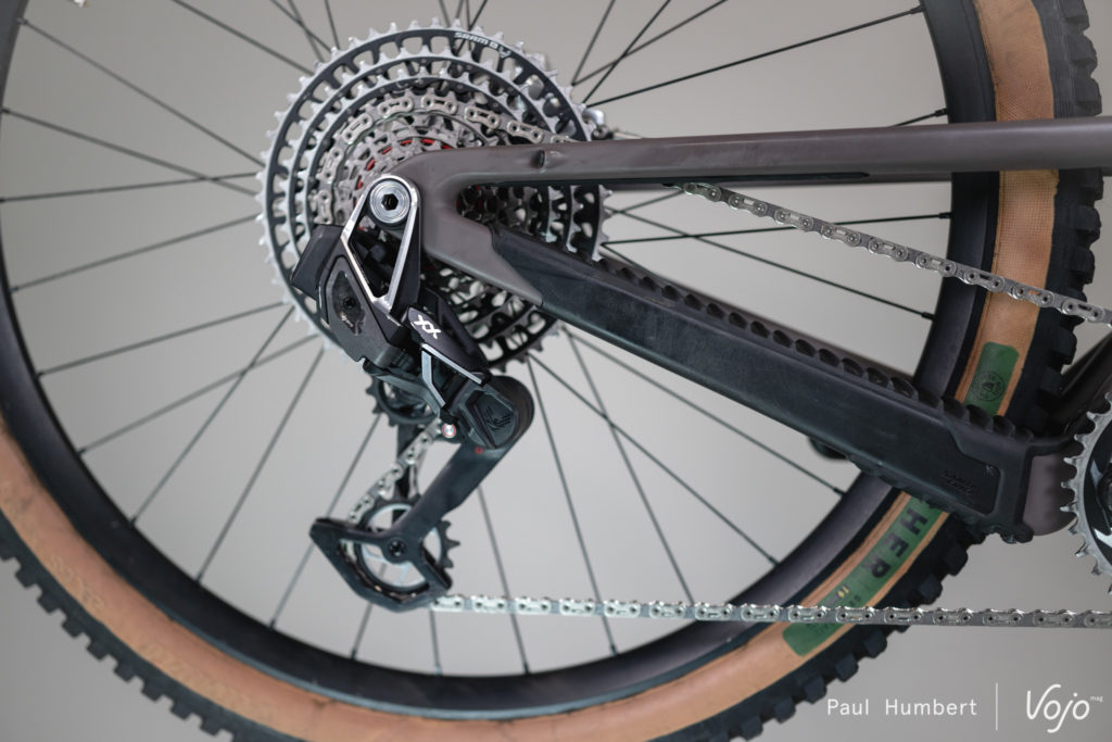 Ça y est ! Plusieurs années après les premières rumeurs issues de brevets, huit mois après l’avoir aperçue pour la première fois en compétition, elle est officiellement devant nos yeux : la nouvelle transmission Sram Eagle AXS sans patte de dérailleur, nom de code T-Type. Dans les grandes lignes, les changements paraissent mineurs puisqu’on reste en 12 vitesses et en AXS mais en réalité, ce sont bien de tout nouveaux groupes qui n’ont plus rien à voir avec leurs prédécesseurs. Vojo a eu l’occasion de faire partie des quelques médias triés sur le volet qui ont pu tester pendant les six derniers mois ces nouveaux groupes Sram Eagle AXS, déclinés en XX et X0. Voici notre reportage :