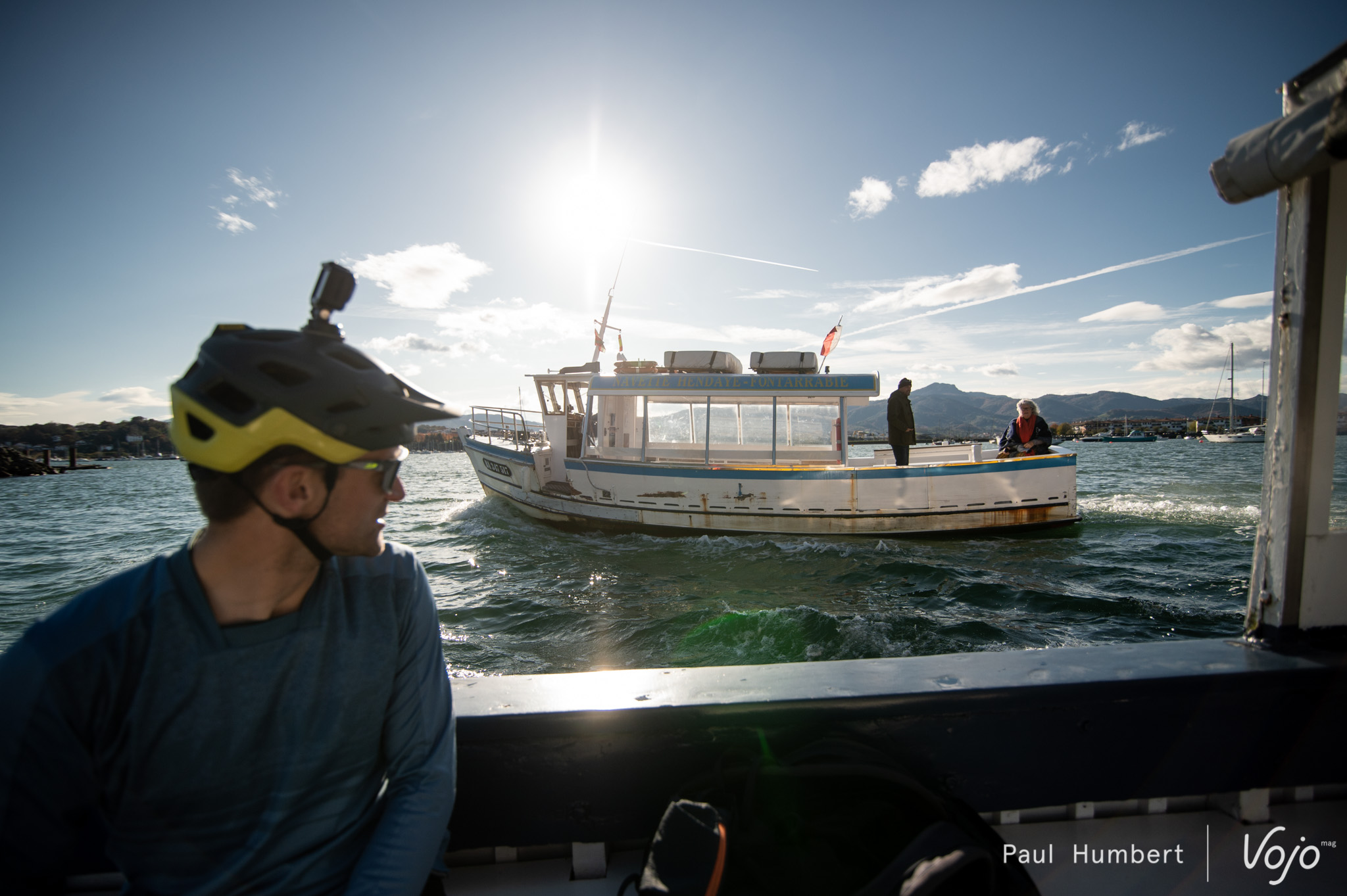 Arrivés au port, on tente de rejoindre le bon, de l’autre côté de la frontière. Un petit bateau navette effectue la liaison Hendaye-Fontarrabie tout au long de la journée et est facile d’accès à vélo à cette période. Quelques minutes de traversée suffisent à nous faire changer de pays, de langue, mais pas de passion.