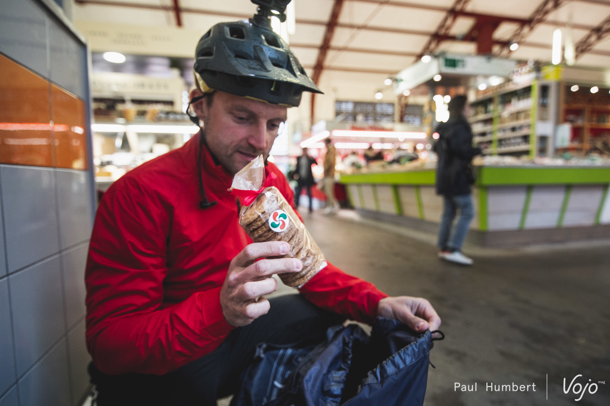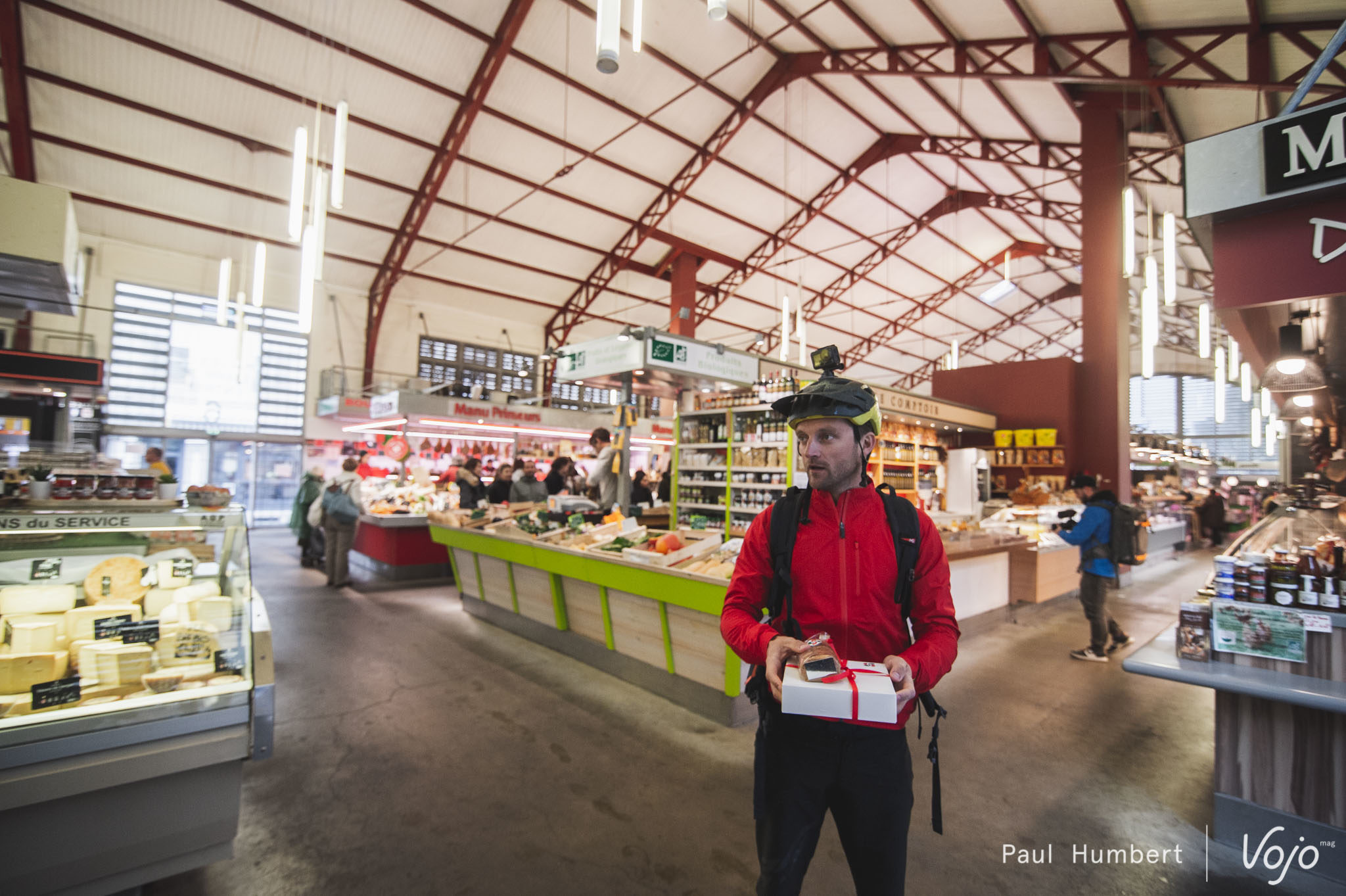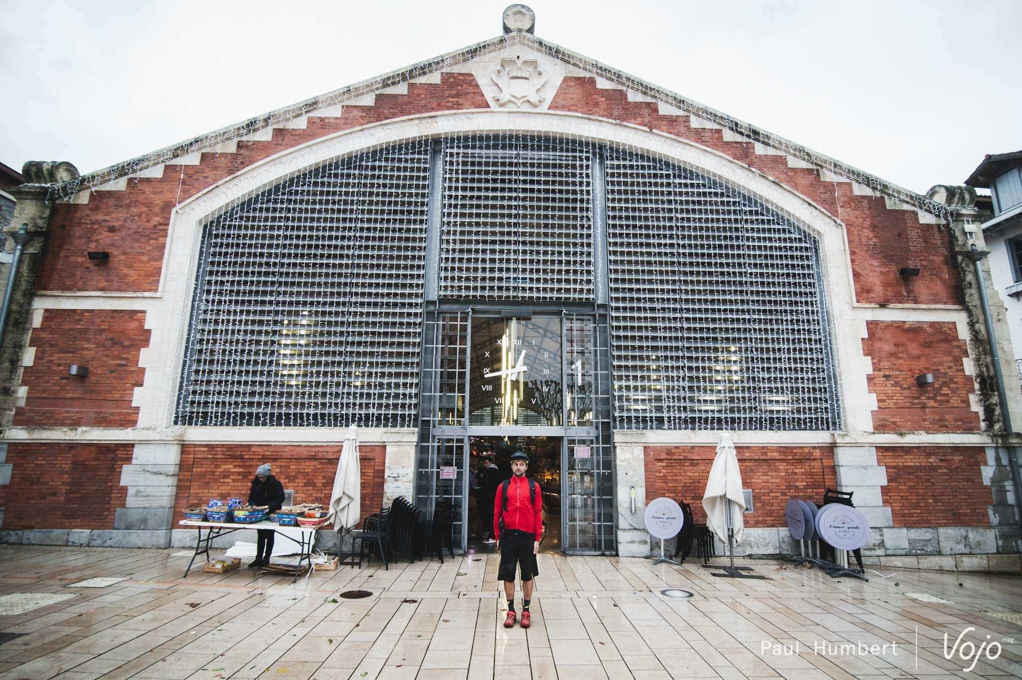Séchés et rhabillés, on file vers les grandes halles de Biarritz à la recherche de notre casse-croute du midi. On laisse nos vélos à l’extérieur pour déambuler entre les allées de produits régionaux. On glisse un gâteau basque dans le gros sac de Fred et, coïncidence ou pas, ce dernier est obligé de refaire le SAG de son vélo avant de repartir.