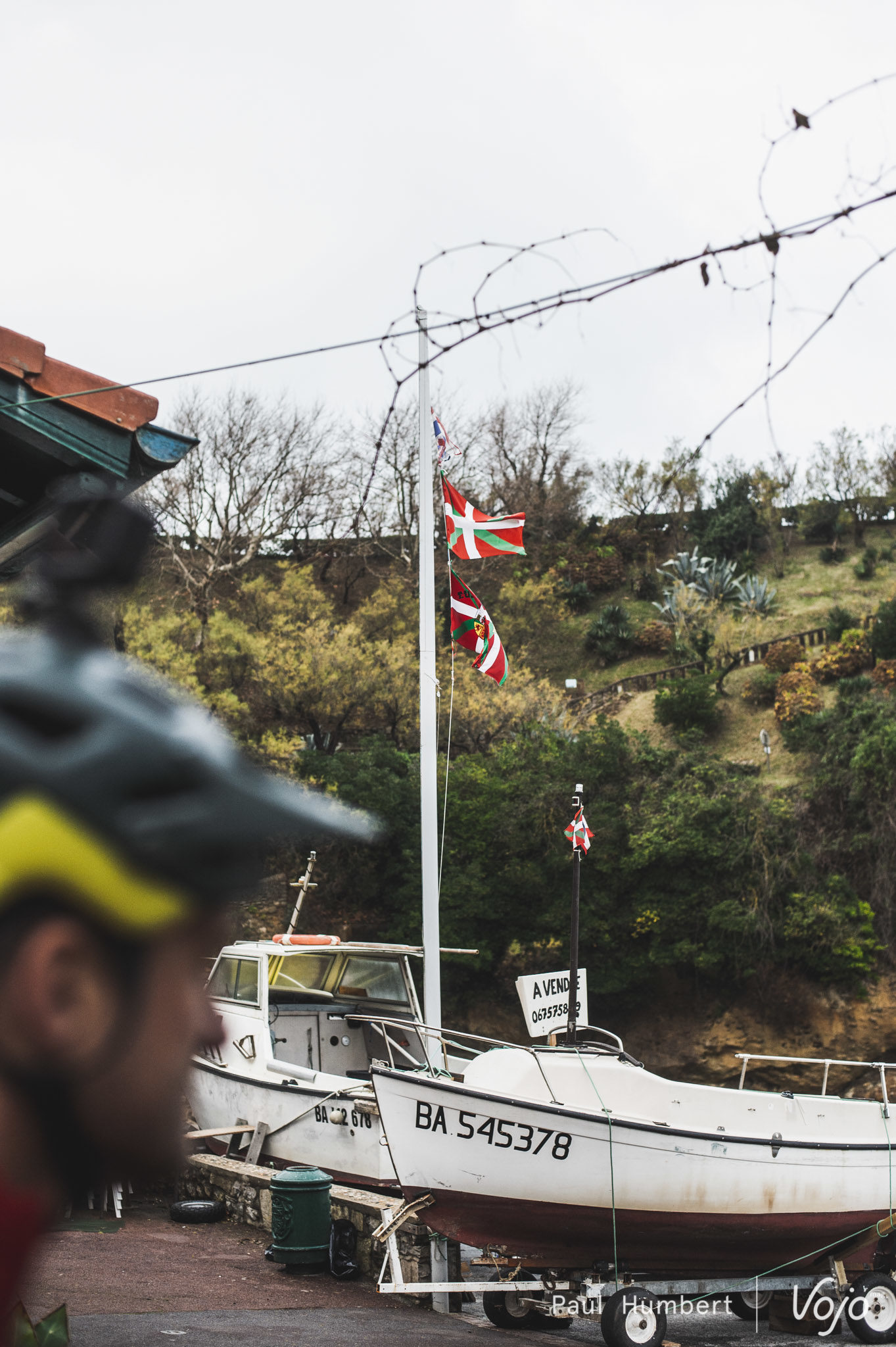 Arrivés au port, on tente de rejoindre le bon, de l’autre côté de la frontière. Un petit bateau navette effectue la liaison Hendaye-Fontarrabie tout au long de la journée et est facile d’accès à vélo à cette période. Quelques minutes de traversée suffisent à nous faire changer de pays, de langue, mais pas de passion.