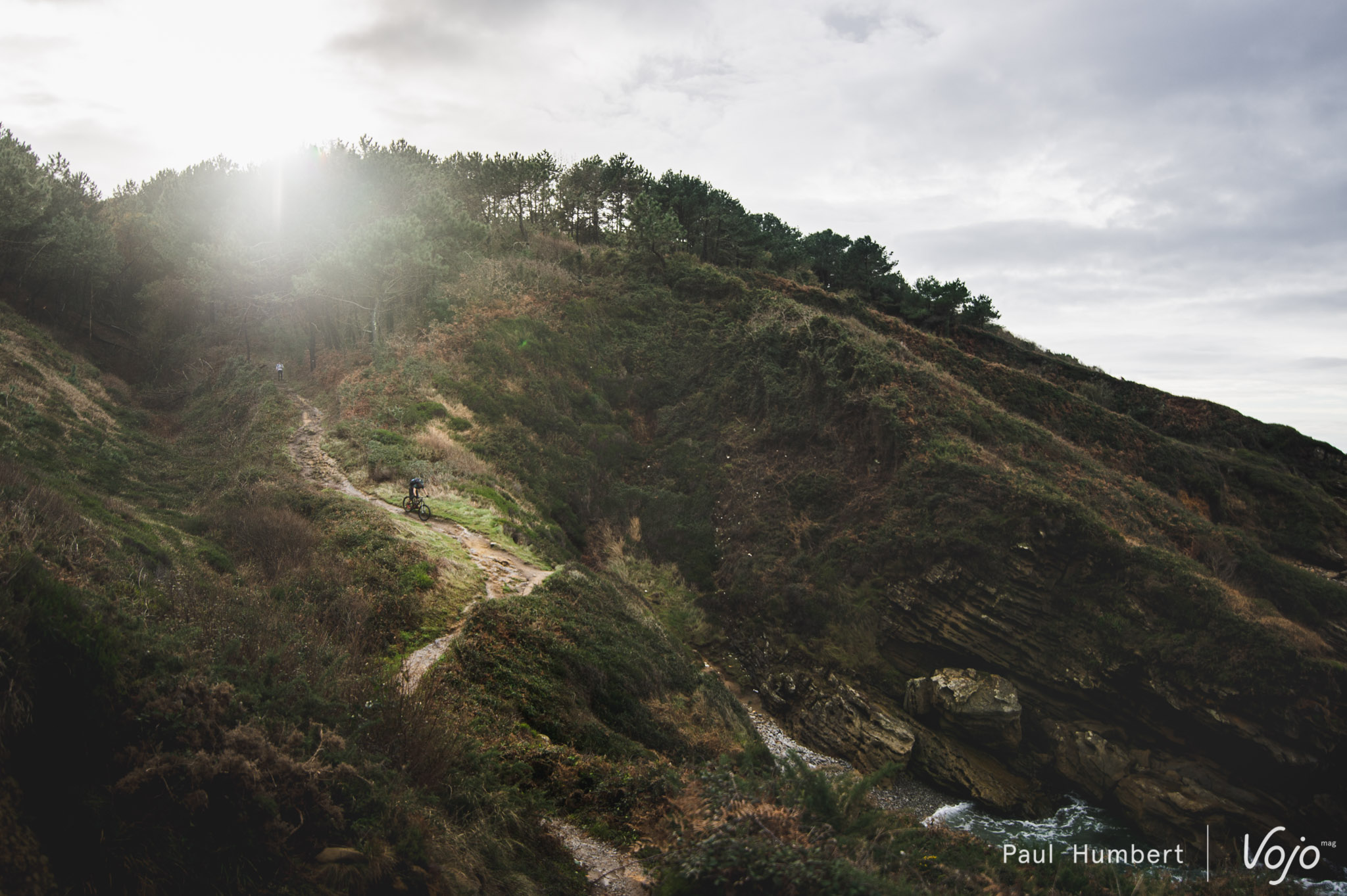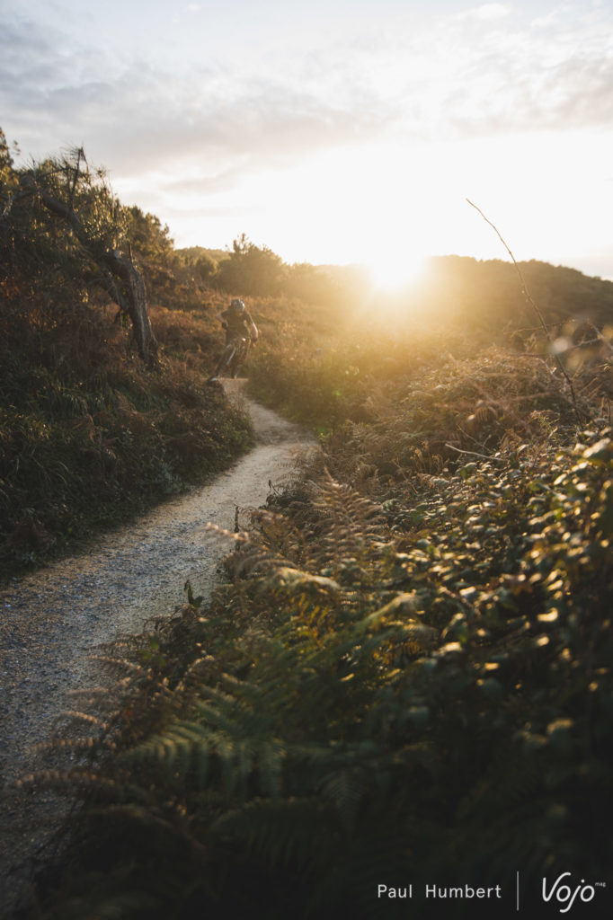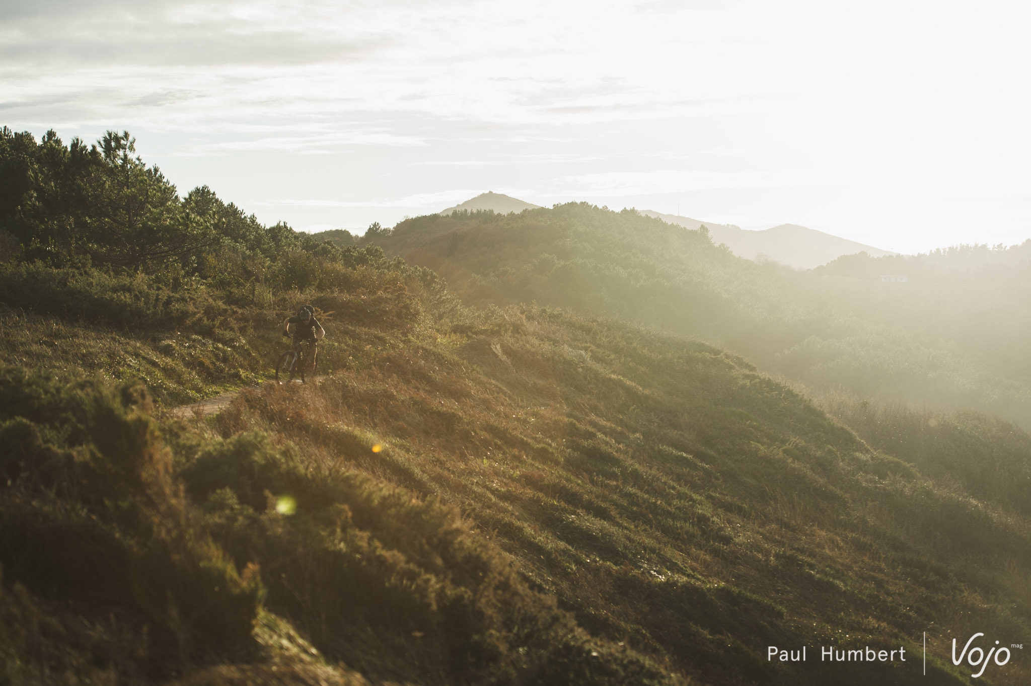 On essuie les embruns de nos lunettes et on entame la descente vers Hondarribia. On repasse dans la forêt ou se mélangent plusieurs espèces d’arbres mais c’est principalement sur un tapis d’épines qu’on trouve un superbe rythme.
