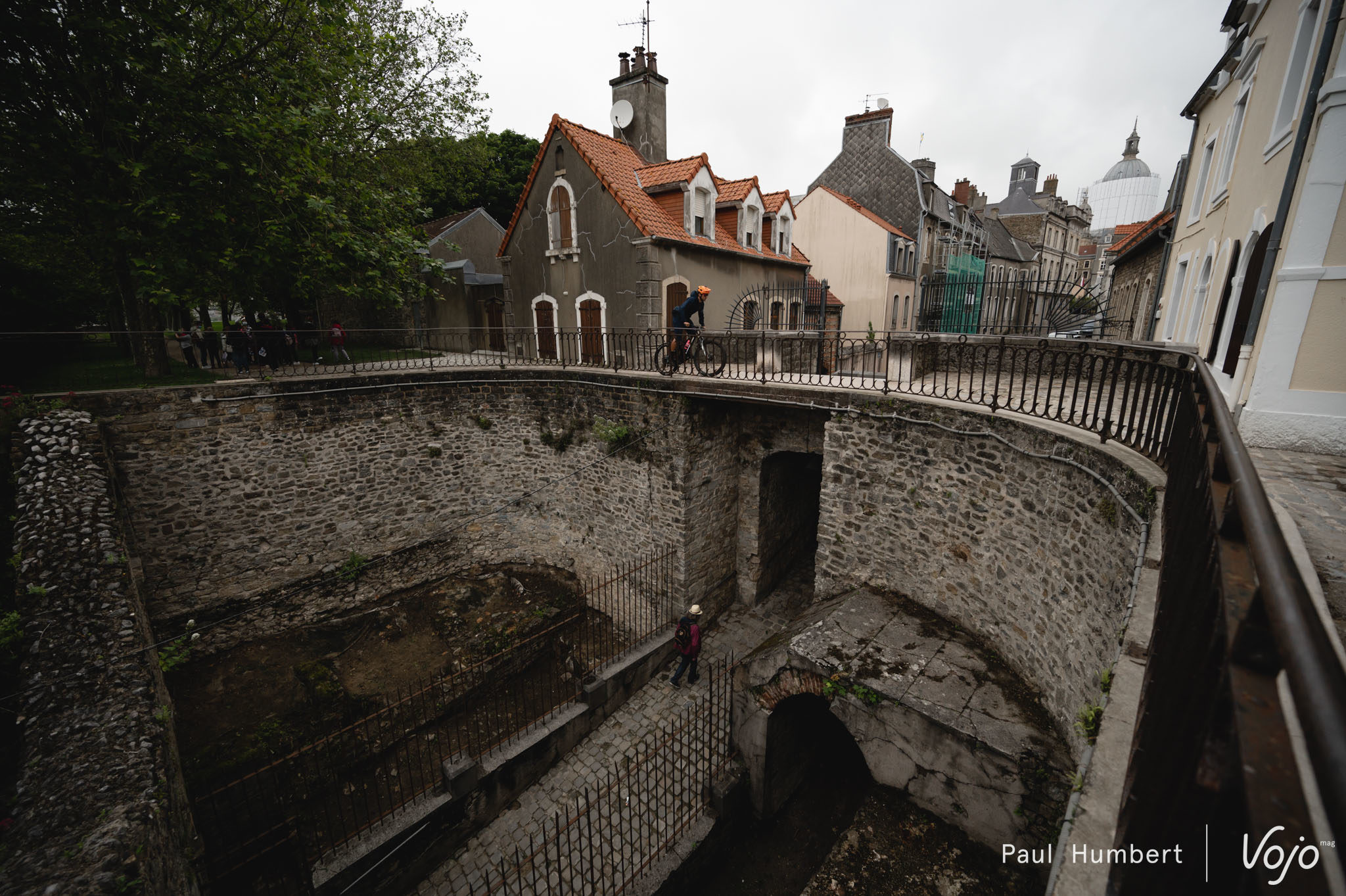 Après le trajet et un rapide tour dans le joli centre historique de la ville, direction le Mont Saint-Frieux. Le spot est petit mais très fun à rouler, même sous la pluie. Le terrain est sablonneux, et un peu comme sur un circuit de XC moderne, on monte, on descend et on s’amuse bien ! Quelques passages pour la vidéo, et on file plus au sud !
