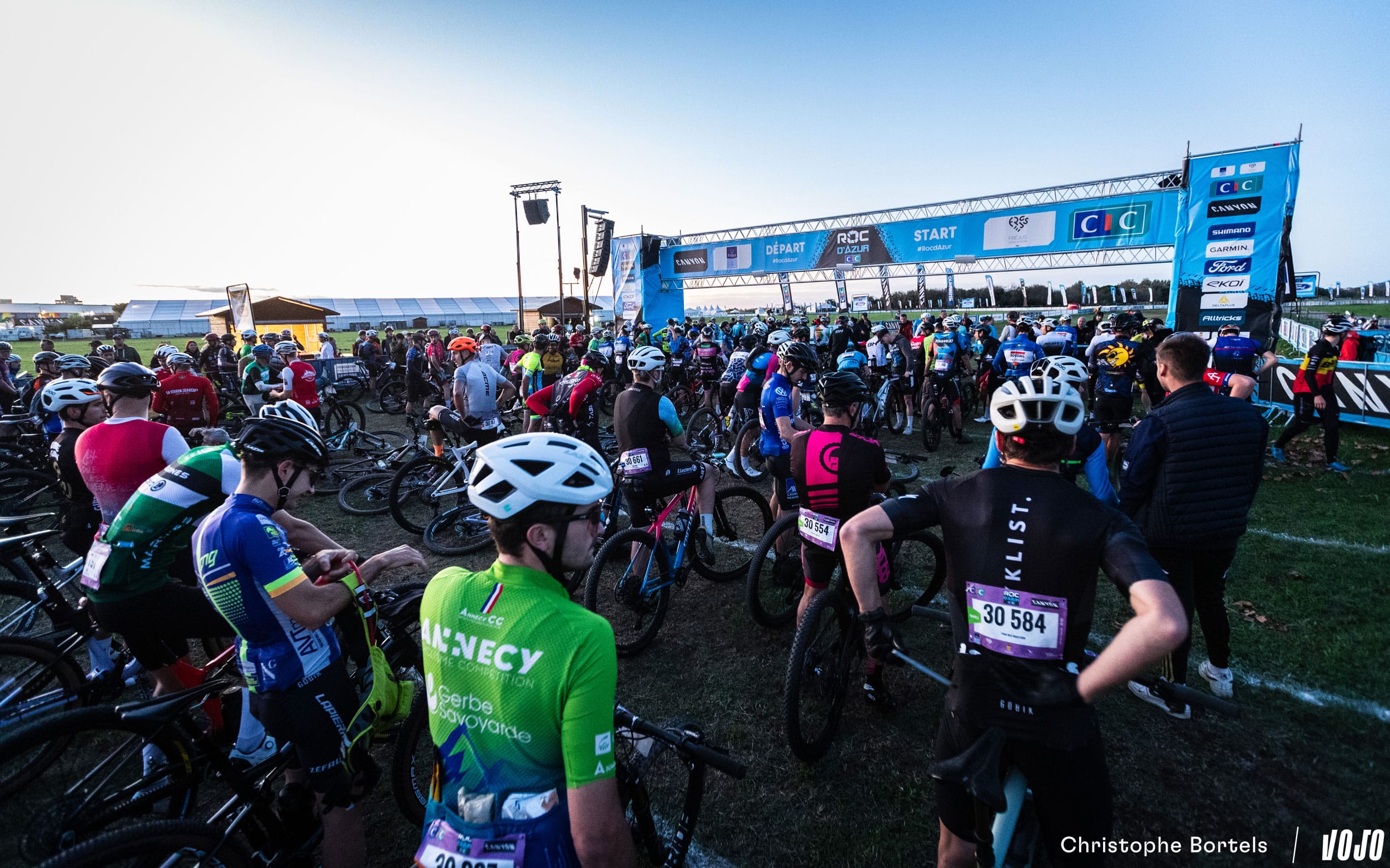 Le Roc Marathon, c’est traditionnellement l’épreuve VTT la plus longue du Roc d’Azur. Et cette année elle l’était un peu plus encore puisque le parcours comptait une dizaine de kilomètres supplémentaires, grâce à quelques boucles ajoutées à la trace des dernières années et portant le total à 102 kilomètres pour un peu plus de 3000 mètres de dénivelé positif. C’est la première fois de son histoire que le Roc Marathon dépasse la barre symbolique des 100 km ! Pas de quoi faire peur aux concurrents qui étaient une fois de plus très nombreux au départ. Un départ donné à 7h30, au lever du soleil.