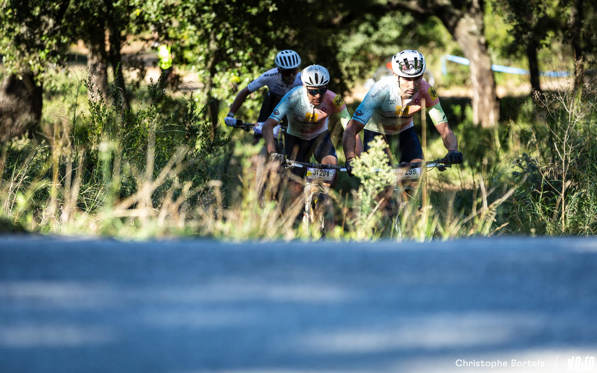Les co-équipiers José Dias et Pablo Rodriguez Guede, accompagnés de Gioele De Cosmo, composent le trio de poursuivants.
