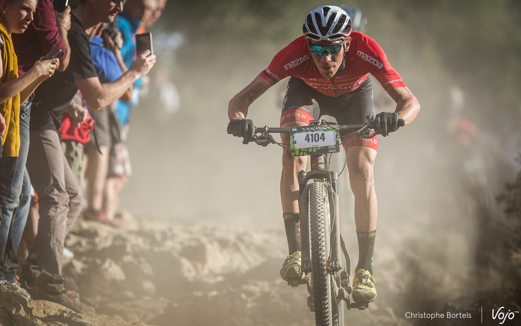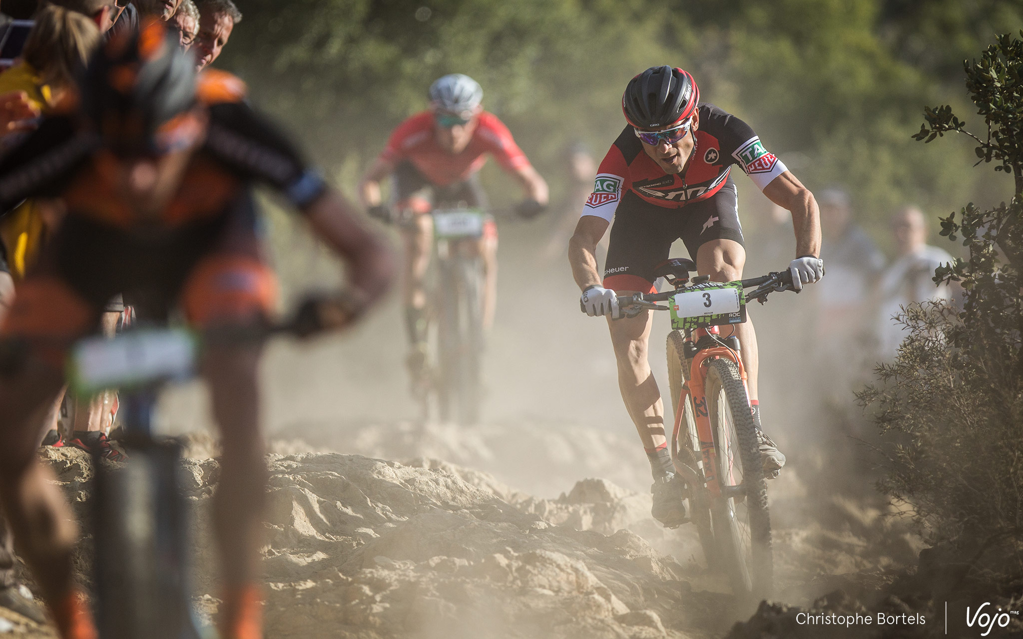 Nicola Rohrbach avait pointé le Roc Marathon parmi ses objectifs de fin de saison mais une crevaison l’a écarté du groupe de tête. Il s’est magnifiquement vengé en remportant le Roc d’Azur ce dimanche, devant Daniel Geysmayr (vainqueur justement du… marathon le vendredi) et Jordan Sarrou pourtant hyper motivé par la perspective de remporter une 3e victoire et devenir ainsi recordman de l’épreuve. Replongeons-nous dans cette épreuve poussiéreuse qui conclut la saison 2017 :