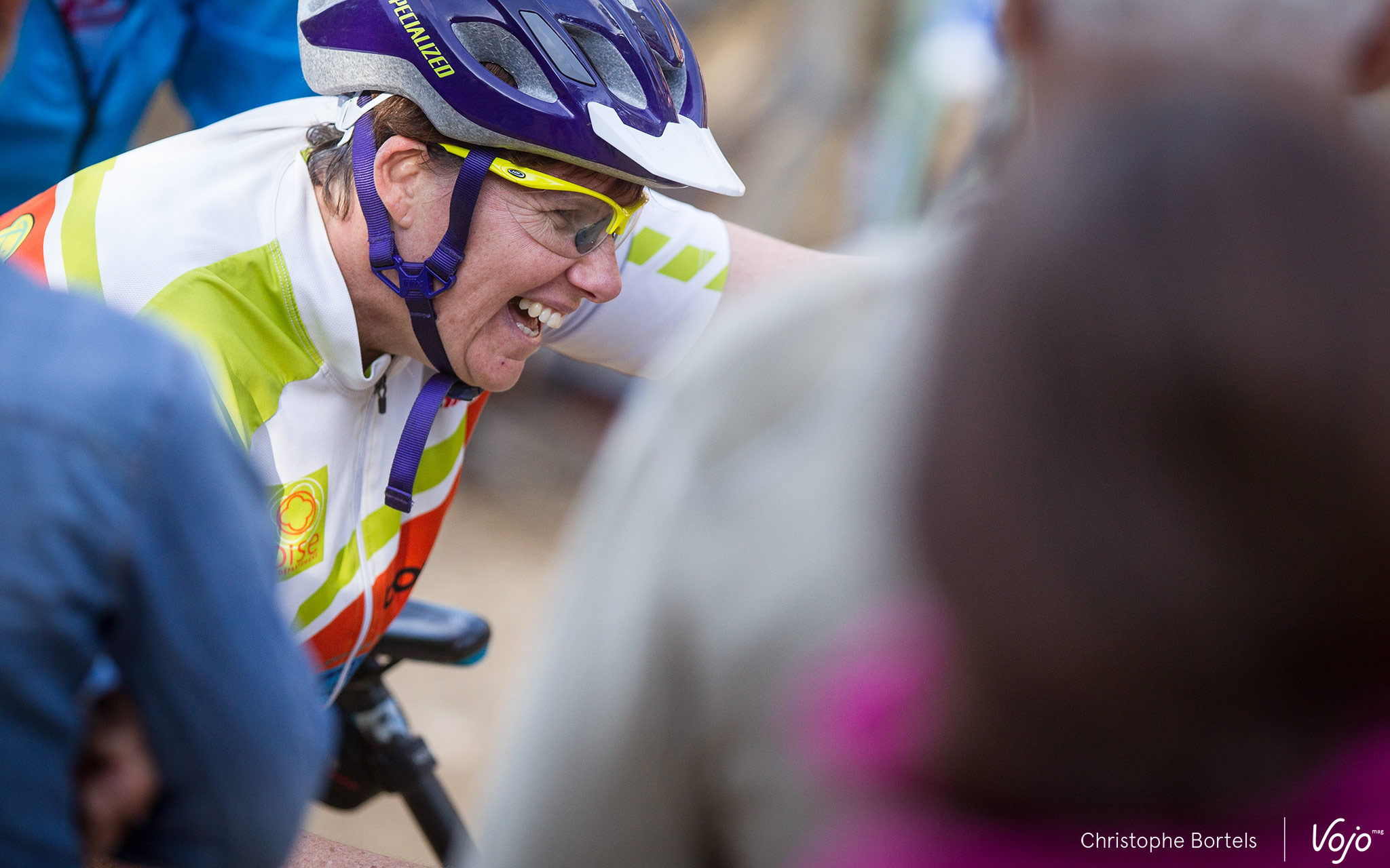 … et la dernière concurrente du Roc Dames gravit le Bougnon en poussant le vélo, à bout de force mais portée par les applaudissements du public. Une belle leçon de jusqu’au-boutisme !