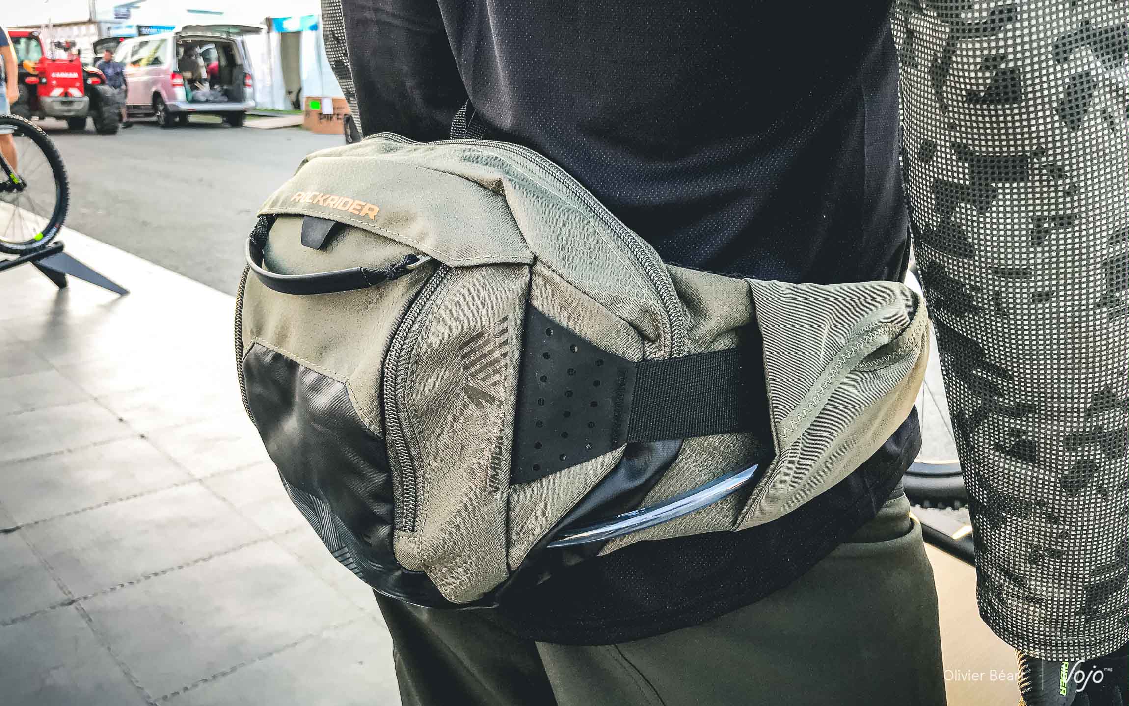 C’est en effet une des autres grosses nouveautés Rockrider sur ce salon, cette banane peut accueillir une poche à eau d’1,5 L. La forme a été étudiée pour rester stable et au contact du corps même sur les chemins chaotiques. Elle intègre une poche compartimentée pour ranger divers outils tandis que le tuyau de la poche à eau est maintenu par un clip aimanté.