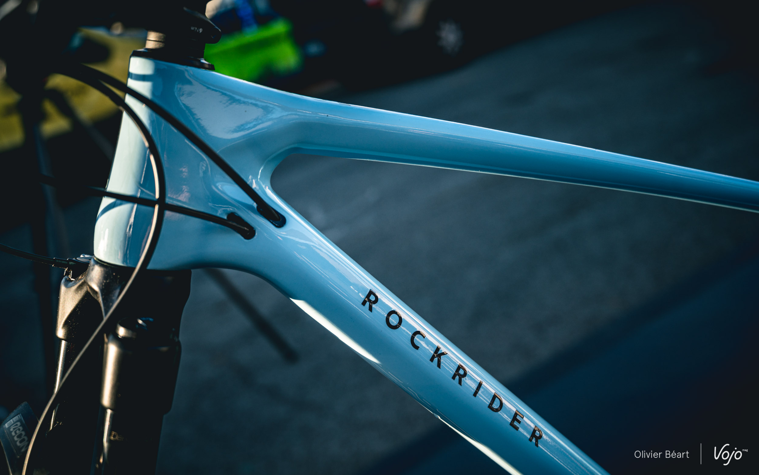 Selon Rockrider, il a été conçu pour les marathons rapides et roulants comme le Grand Raid BCVS en Suisse, ou les parcours XCO nerveux. Le cadre a été travaillé en 3 parties, pour offrir à la fois de la stabilité au niveau de la direction, une excellente rigidité latérale sur le triangle avant et une souplesse bien dosée à l’arrière pour garder du grip et éviter à l’arrière de rebondir sur tous les obstacles. Les lignes se veulent aussi plus agressives avec un décrochage plus marqué sur les haubans. A la rédaction, ce design fait moins l’unanimité que celui du Race 740 et les avis sont plus partagés, mais comme toujours, les goûts et les couleurs…