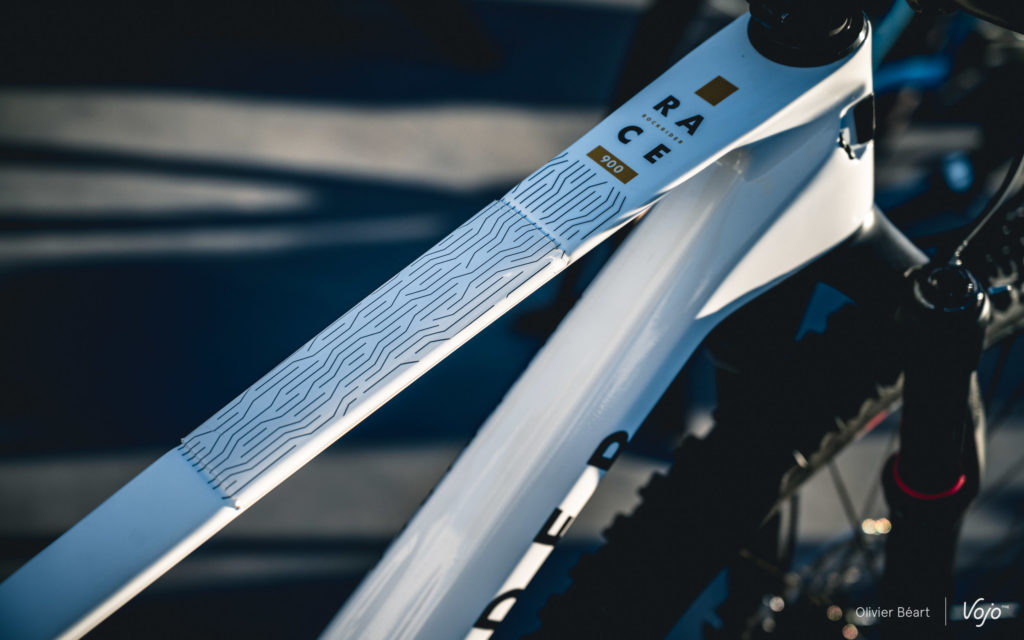 Dans la famille 900, Rockrider dévoile deux cadres et cinq modèles. Commençons par le Race 900, un semi-rigide orienté compétition. Construction, géométrie, formes, son cadre est différent sur tous les plans de celui du Race 740.
