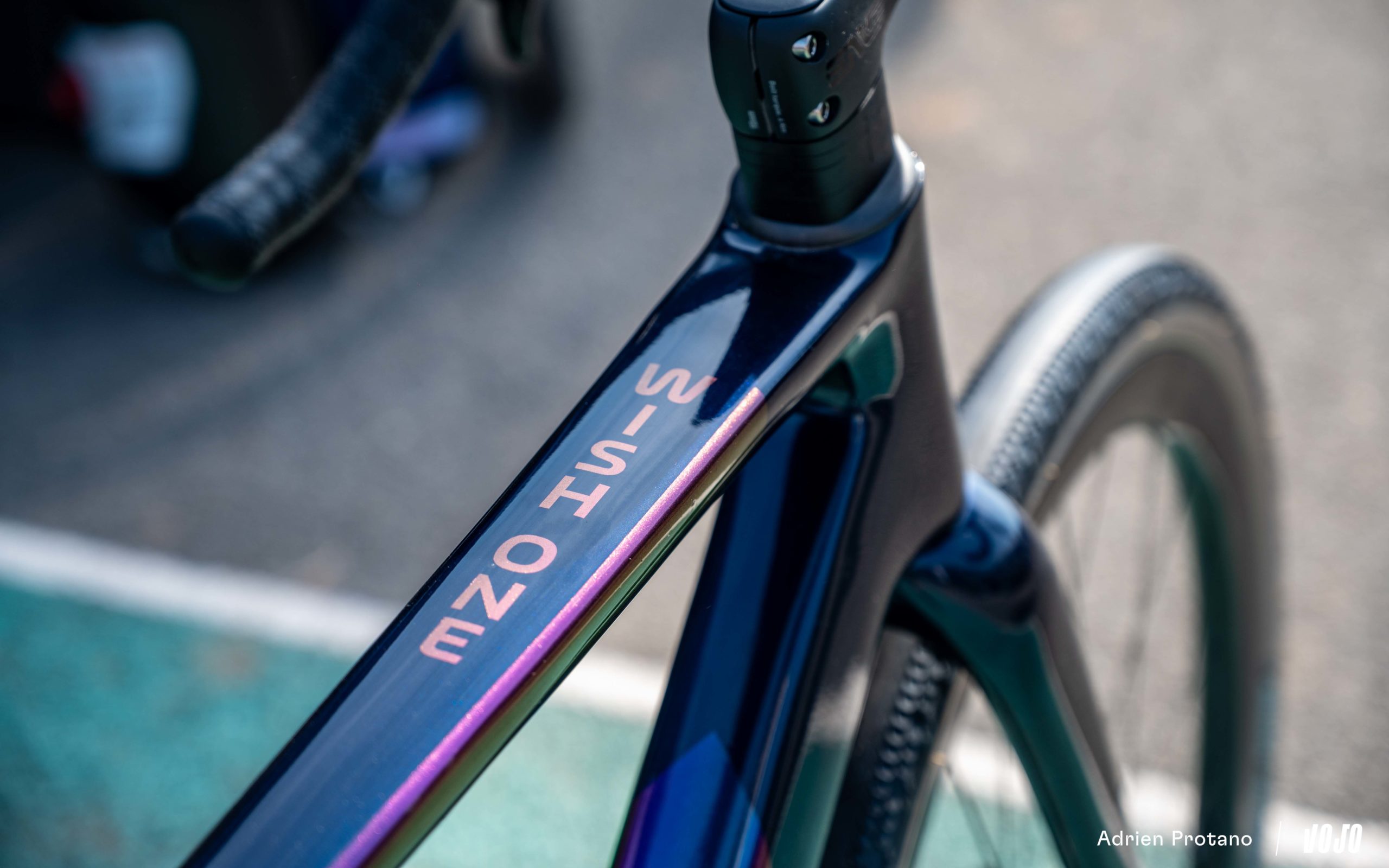 Fabriqué entièrement en France (à Millau plus précisément), ce Wish One SUB se veut performant ! « Ça a été un long chemin pour arriver à produire un vélo en carbone qui puisse être compétitif. On a la chance d’avoir une équipe de pilotes derrière, qui ont été très actifs dans le développement de ce nouveau châssis », explique le fondateur de Wish One. Pour le lancement de ce premier modèle en carbone de la marque, 50 exemplaires numérotés au coloris particulier (ici en photo) sont commercialisés.
