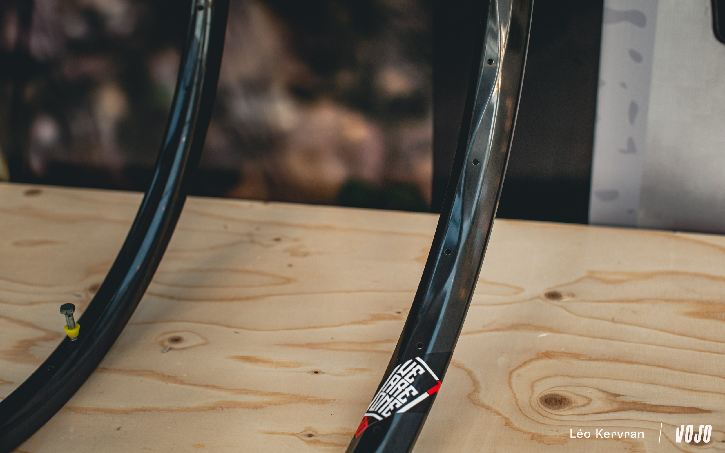 Sur le plan technique, les Deemax Enduro SL (exposées sur le Rossignol de Morgane Jonnier) sont assez différentes des deux autres dans la mesure où elles reprennent de nombreuses technologies des roues plus légères de la marque : le perçage Fore des jantes qui permet de se passer de fond de jante (mais oblige à utiliser ces écrous de rayons si particuliers), l’usinage entre les rayons ou encore le moyeu Infinity 3D (ici à 28 rayons plutôt que 24) à l’arrière.