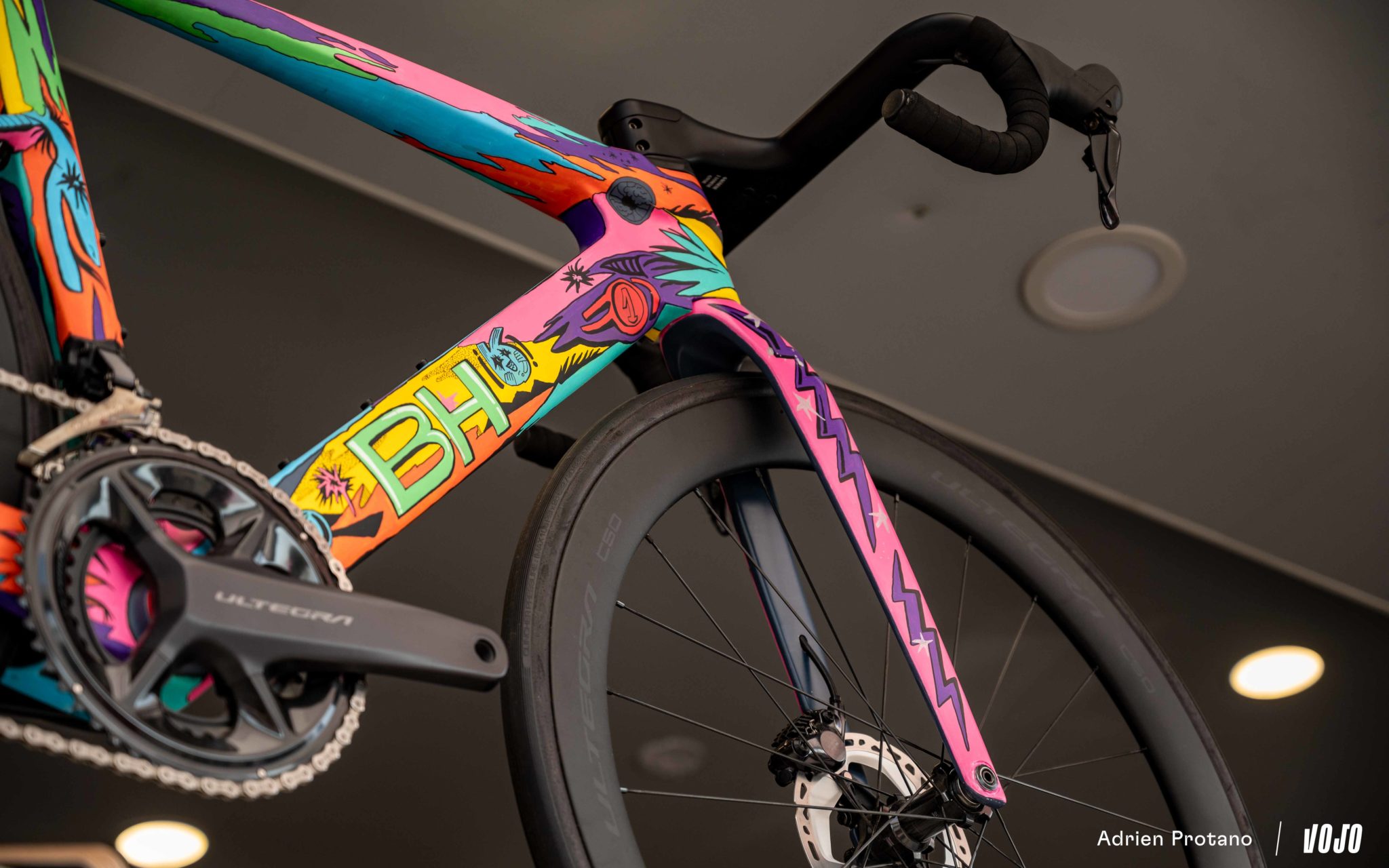 Mention spéciale pour la livrée de ce BH Aerolight imaginé et dessiné par Raisa Álava Robina, artiste et illustratrice espagnole ayant notamment réalisé l’affiche du départ du Tour de France 2023. Cette livrée du modèle haut de gamme de la marque espagnole reflète son style inspiré par les bandes dessinées, les dessins à la main, les couleurs intenses et l’inspiration de la région dans laquelle elle vit. BH précise qu’il ne s’agit pas là d’un one-shoot mais bien d’un programme de collaboration plus général avec divers artistes, il ne reste plus qu’à attendre les VTT !
