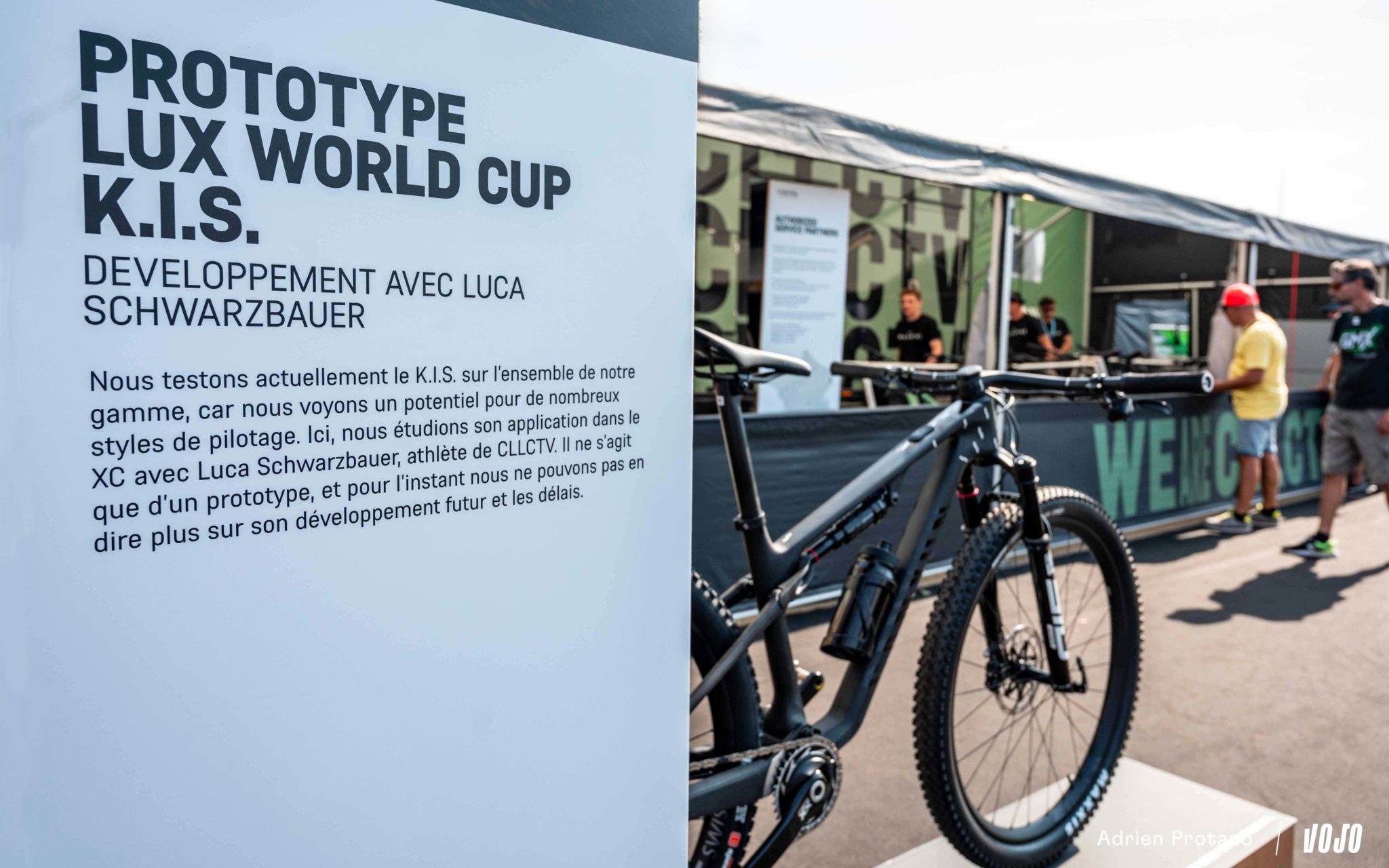 Chez Canyon, on a pu apercevoir le KIS de la marque, à savoir le système de direction assistée (ou plutôt de la stabilité de la direction) de la marque dénommé « Keep It Stable ». Rappelez-vous, nous vous l’avions présenté il y a un an tout pile, au guidon d’un Canyon Spectral : Test nouveauté | Canyon K.I.S. : le vélo à direction assistée ?. Il semblerait que la marque fasse des essais de ce système sur différents types de vélo, dont le cross-country avec l’aide d’un certain Luca Schwarzbauer.