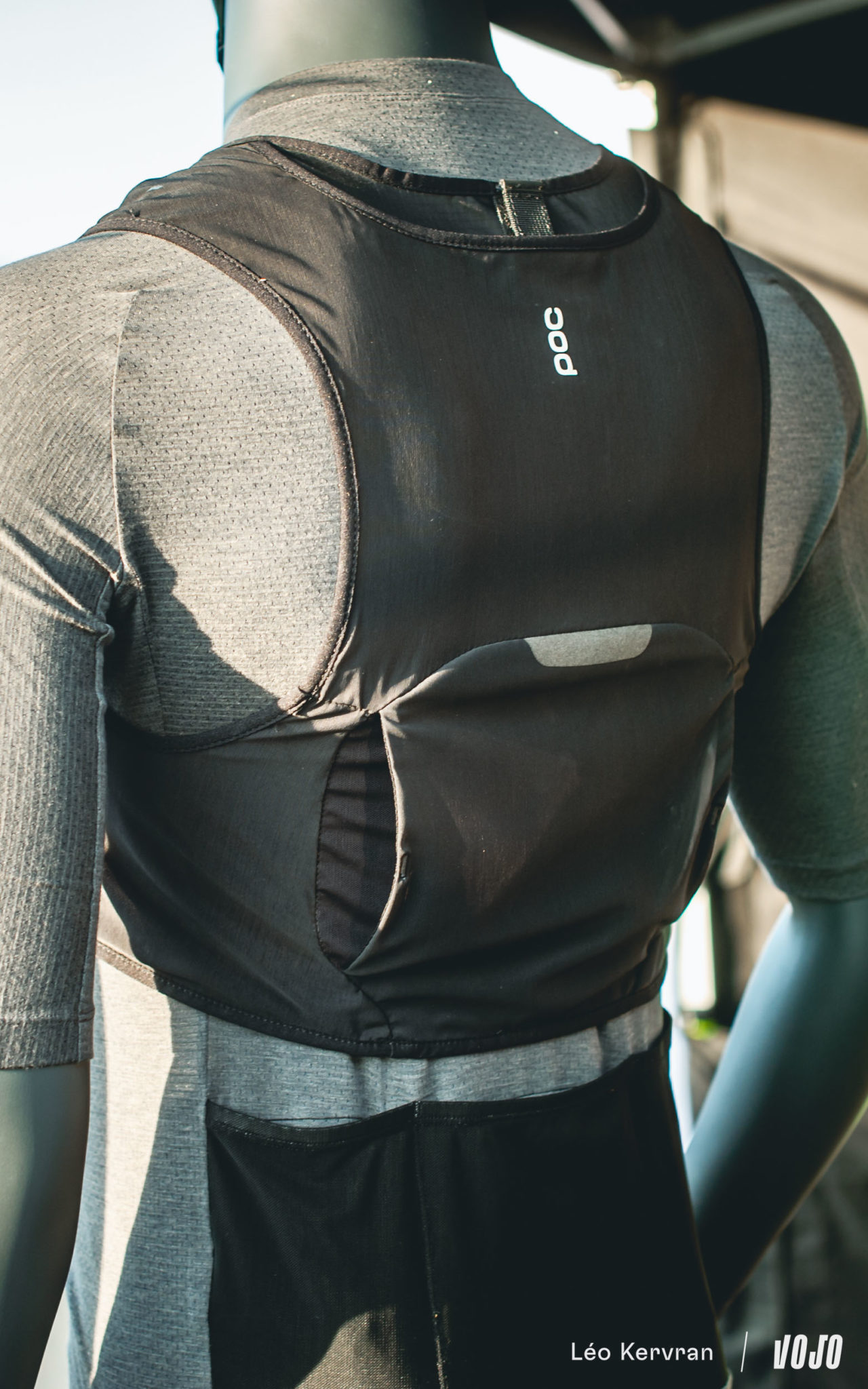 Enfin, la marque présentait un sac à dos minimaliste, déclinaison réduite à l’essentiel des sacs Column. Ici, pas de protection dorsale VPD intégrée, le sac est conçu comme un gilet et se veut le plus léger possible (une solution très populaire en course à pied, et de plus en plus en VTT). Dans le dos, on a une grande poche qui peut accueillir une poche à eau, un espace en dessous pour ranger une veste ou quelque chose de trop encombrant pour les poches avant, et encore deux poches latérales accessibles sans enlever le sac.