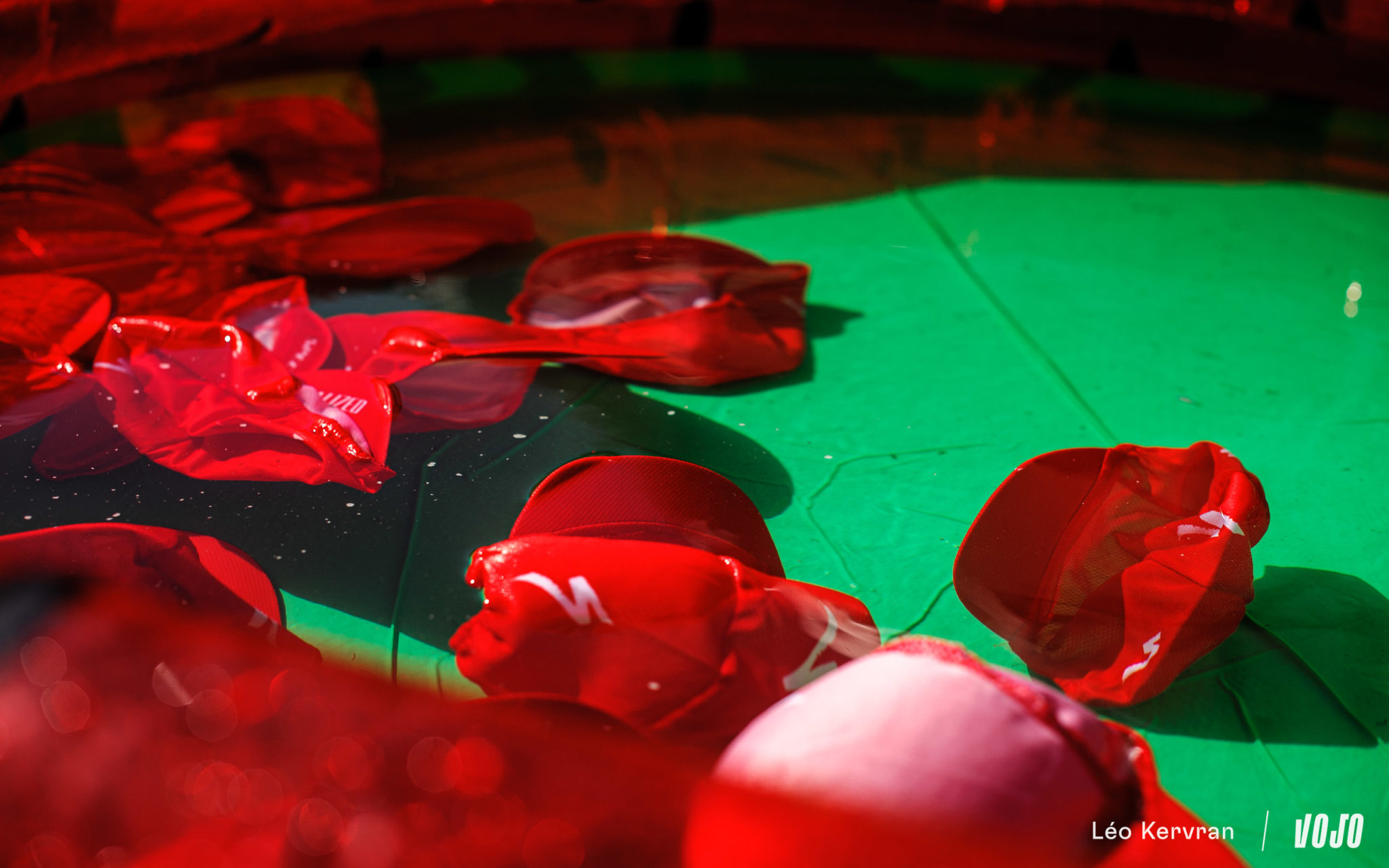 Cette année, il faisait chaud sur le salon du Roc d’Azur… Alors, encore chez Specialized, on a vite improvisé une solution pour rafraîchir les visiteurs. Une petite piscine gonflable, des casquettes et le tour est joué. Ne manquait plus qu’une canne à pêche et quelques canards !