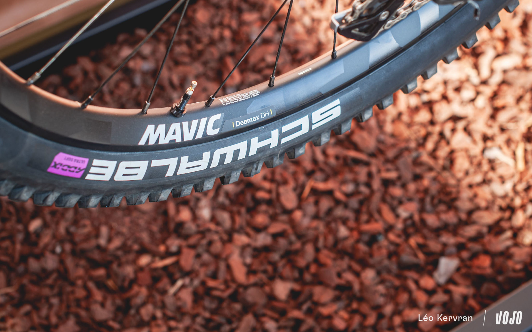 A l’inverse, Deemax Park (ici sur le Norco de William Robert) et Deemax DH (sur le Commencal de Lisa Bouladou) se veulent évidemment plus robustes mais aussi plus simples, pour faciliter les réparations sur le paddock ou en bas du bikepark : écrous de rayons classiques et rayons coudés faciles à trouver en magasin.