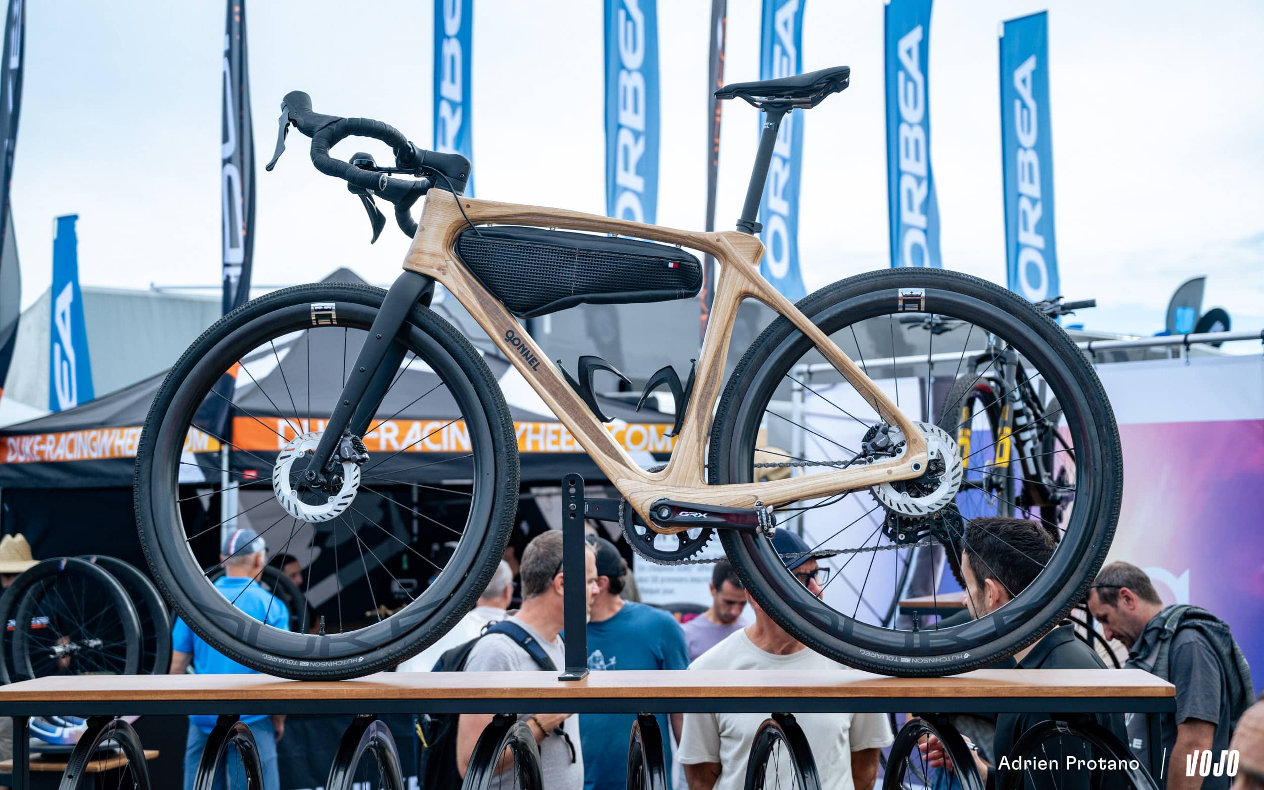 Sur ce joli vélo en bois de la marque française Gonnel, c’est une paire de roues gravel Aero que l’on avait aussi mise à l’essai, les Baccara WRX Aero 42 SLR2 : Test | Roues gravel Duke Baccara WRX Aero 42 SLR2 : une autre vision de l’aéro