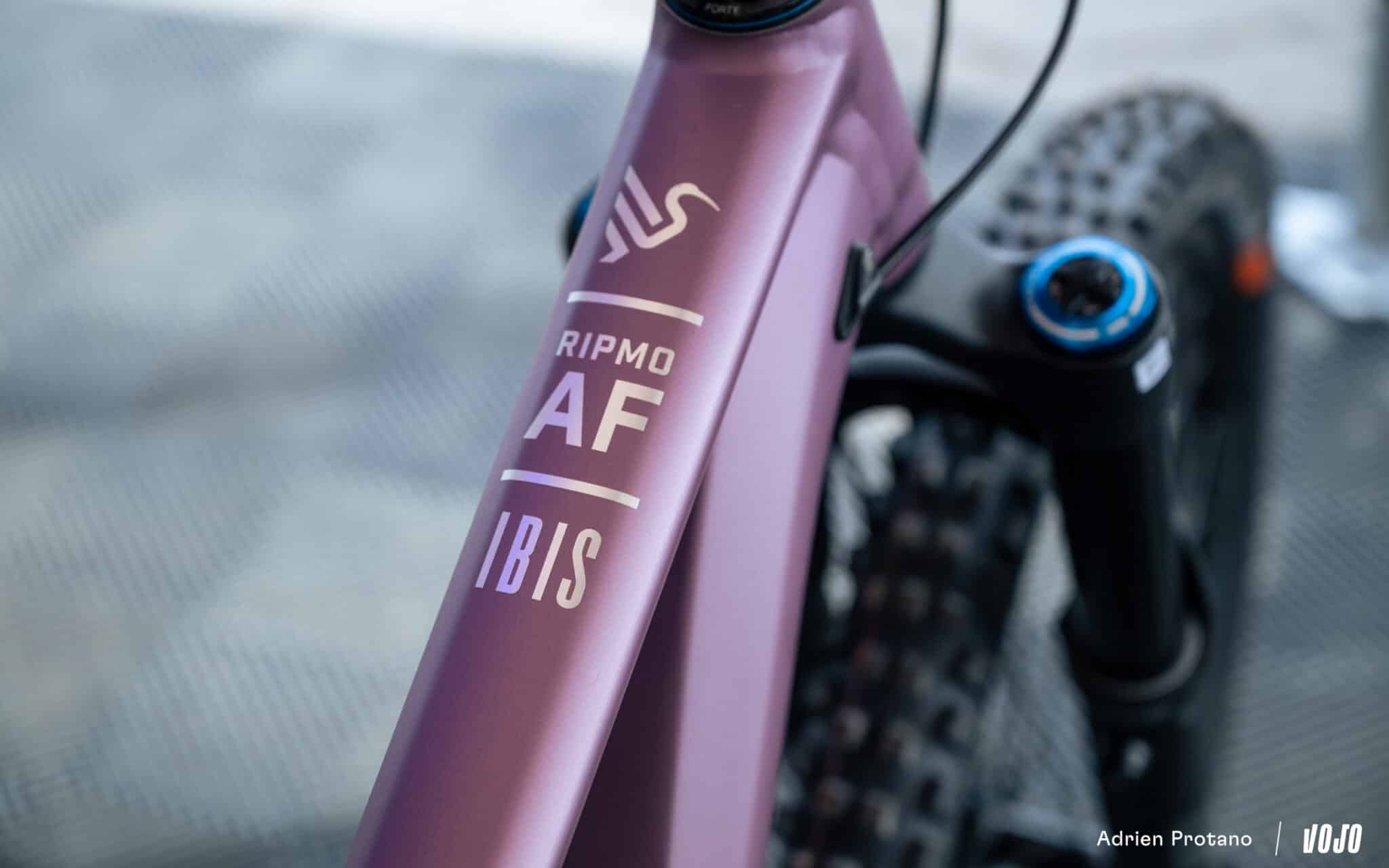Pas très répandu dans nos régions, un joli Ibis Ripmo en aluminium se cachait sur le stand du distributeur de la marque, Race Company. Sur le papier, on notera le montage en roues de 29″ ou le montage mulet, le débattement de 160/150 mm et la géométrie directement inspirée de la version carbone.