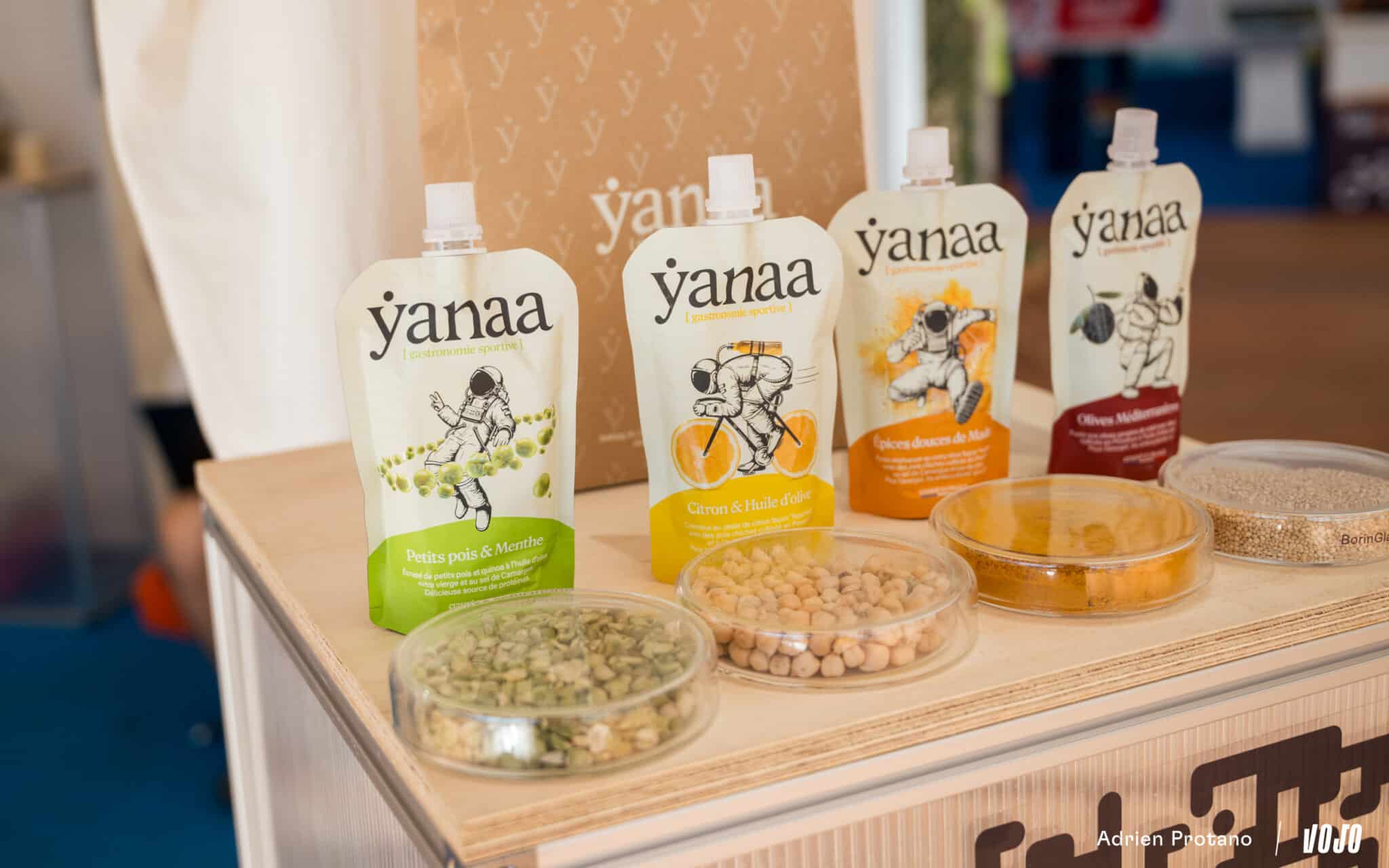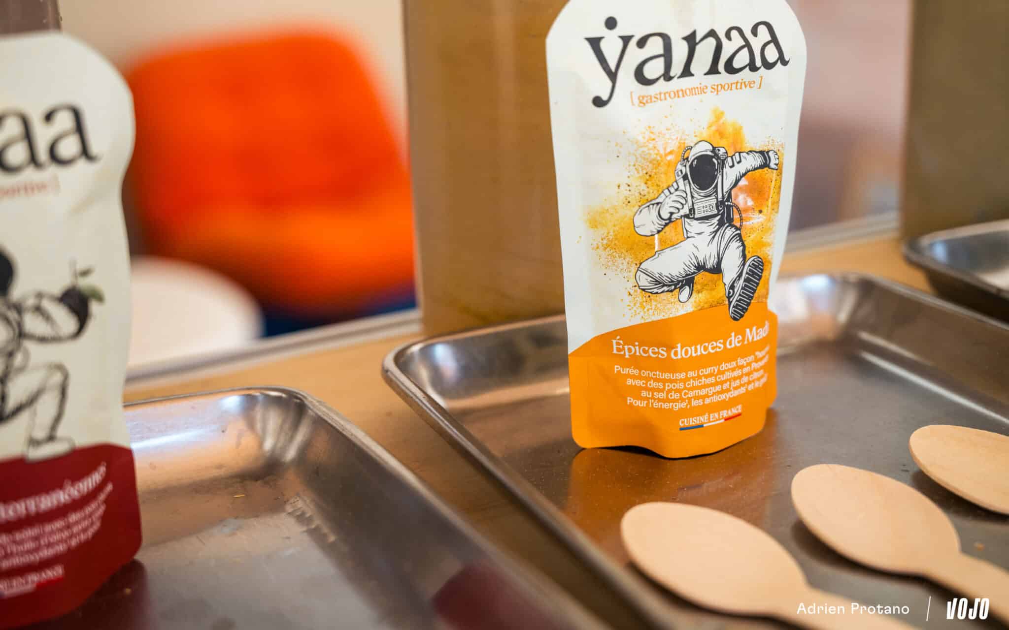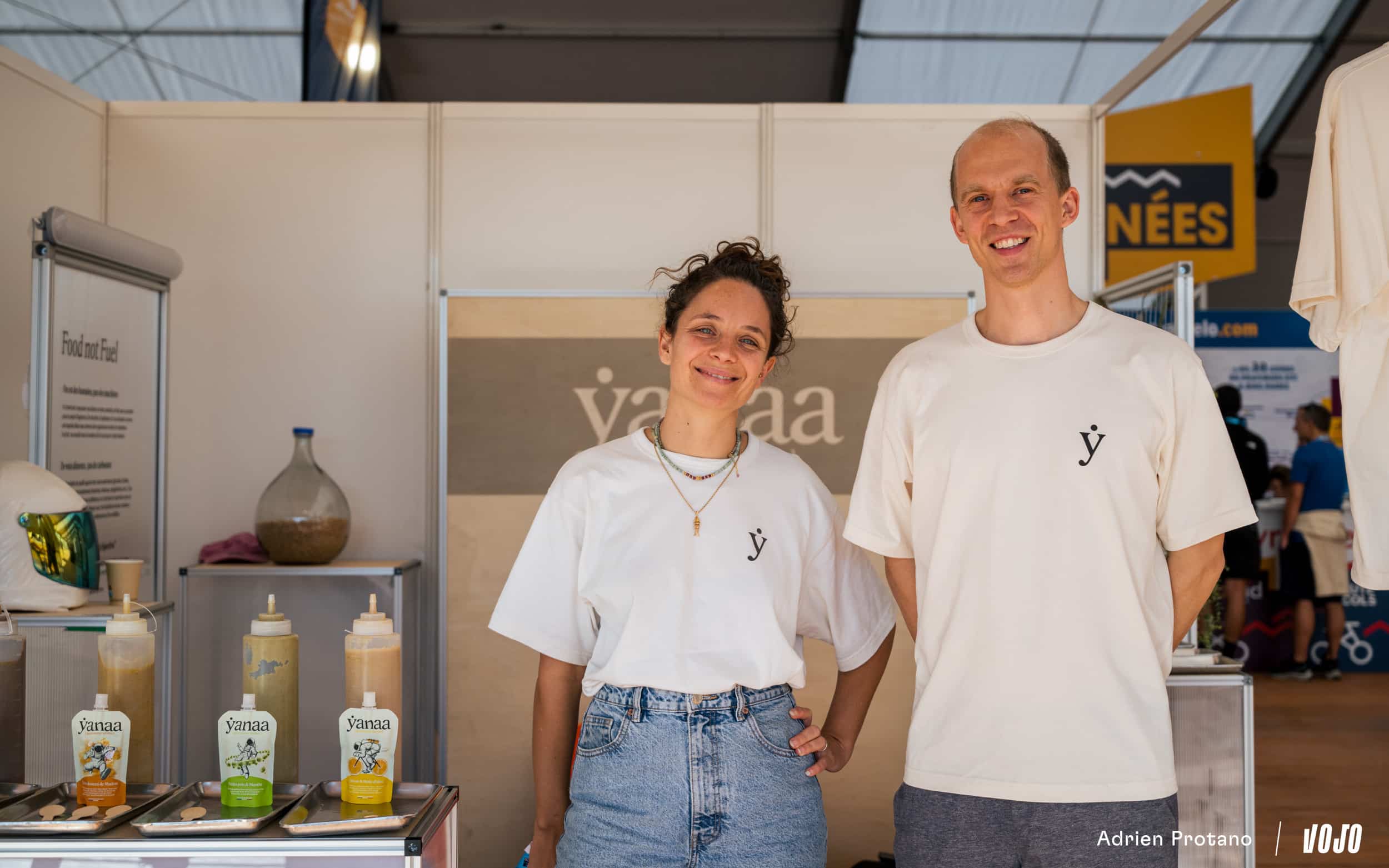 Il n’en fallait pas plus pour piquer notre curiosité. Cap sur le stand de la petite marque Yanaa où l’on rencontre Anouck et Chris, co-fondateurs. « Je suis passionnée de sports outdoor, notamment de snowboard et de vélo, mais aussi de cuisine où j’ai développé mon activité de chef privé, j’ai aussi été cuistot pour le Commencal Muc-Off par le passé. J’ai fait ces préparations pendant des années pour mon propre usage, désormais j’ai décidé de les proposer au grand public », explique Anouck.