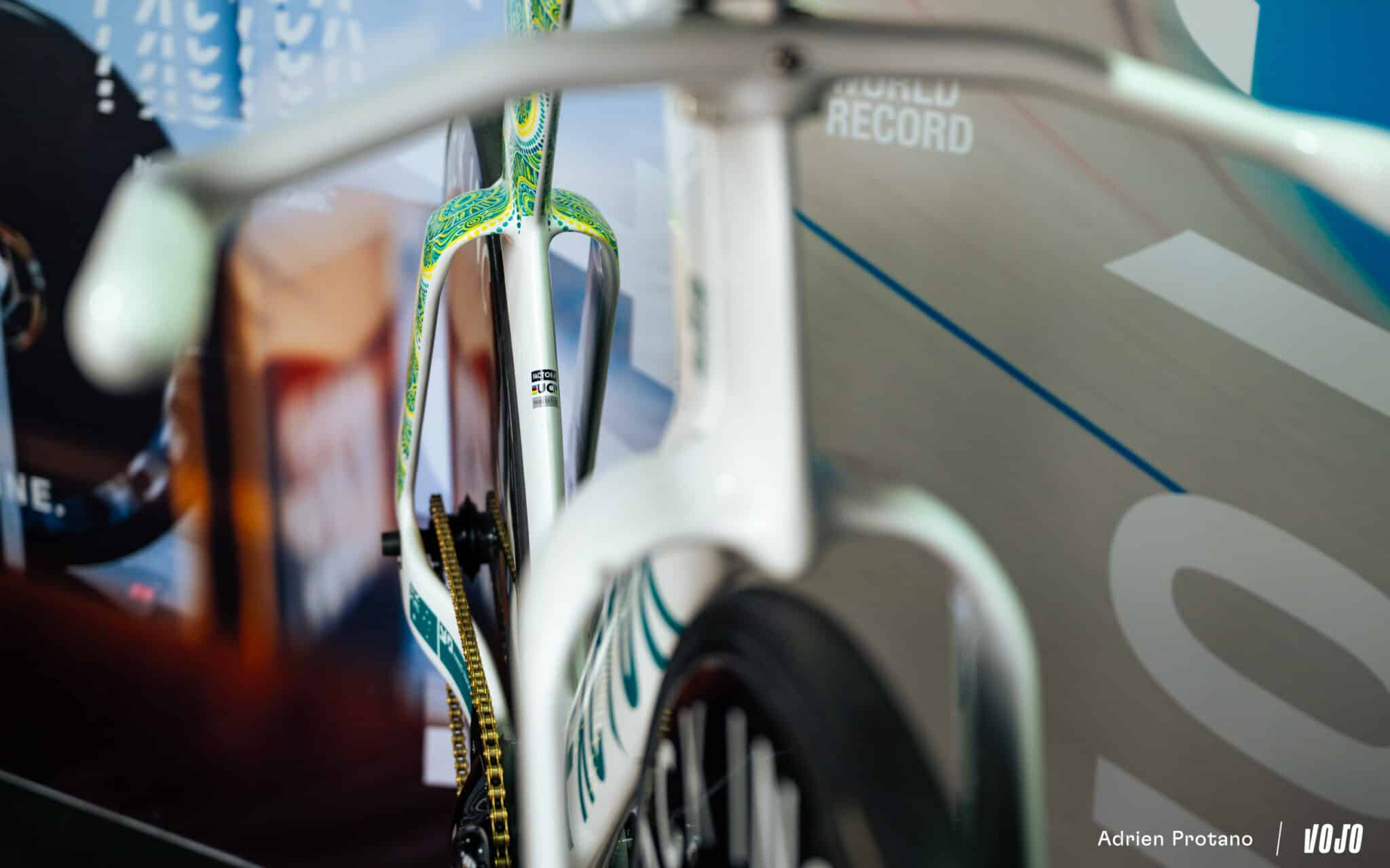 Impossible de ne pas jeter un oeil sur ce vélo de piste, épais comme une feuille de papier et (déjà) détenteur d’un record sur monde.