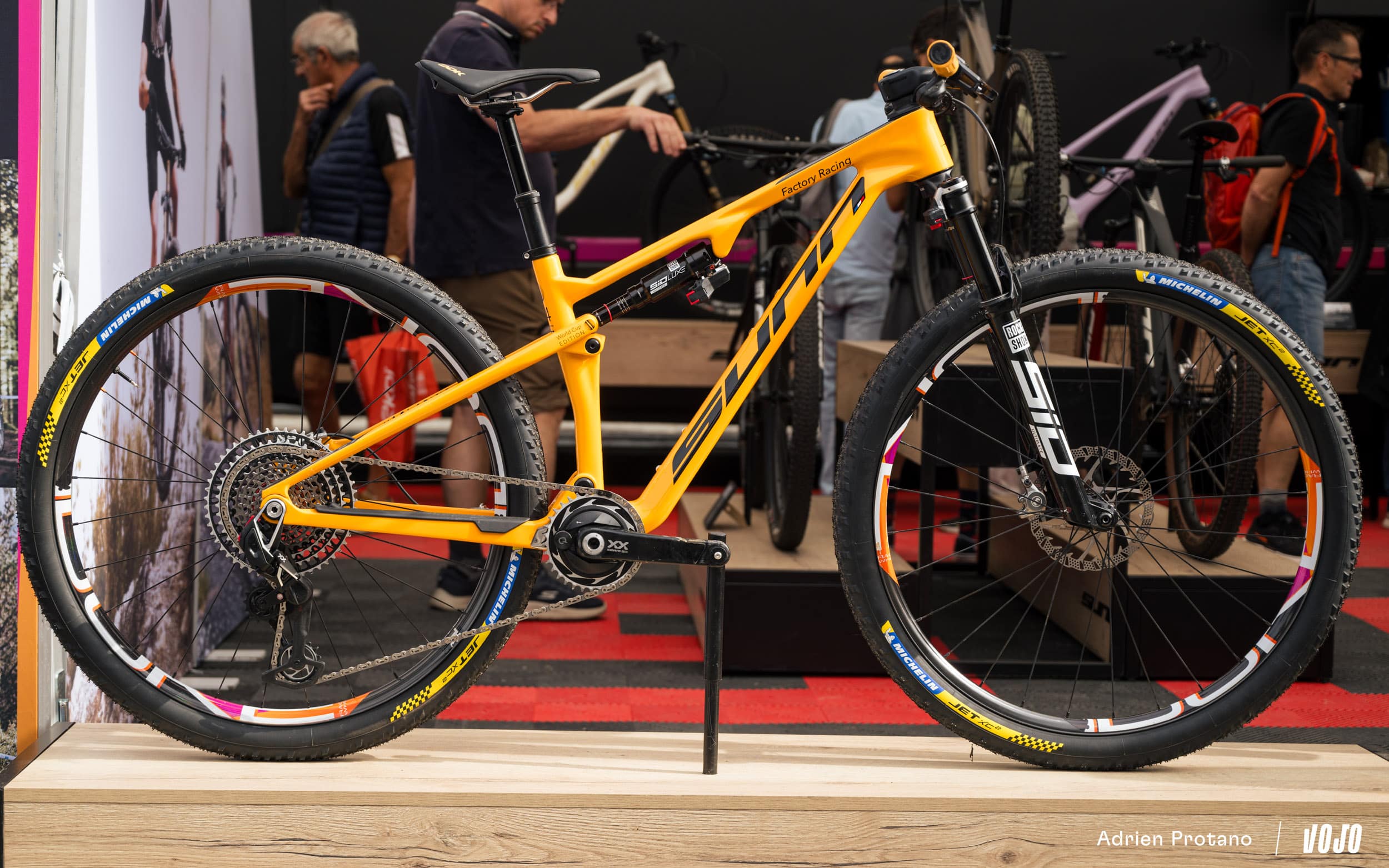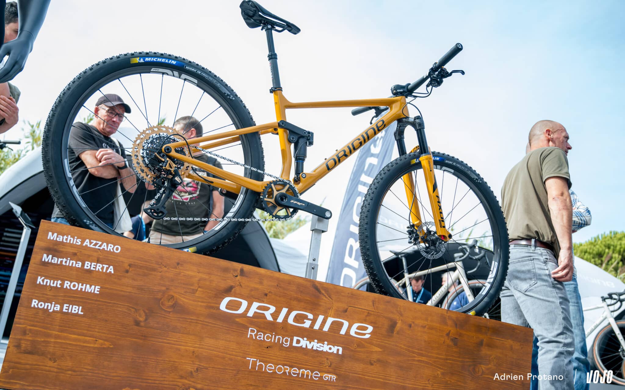 Ou encore ce Théorème TR avec ses plus grosses suspensions, ou le montage exclusif de l’équipe de coupe du monde de la marque, l‘Origine Racing Division.