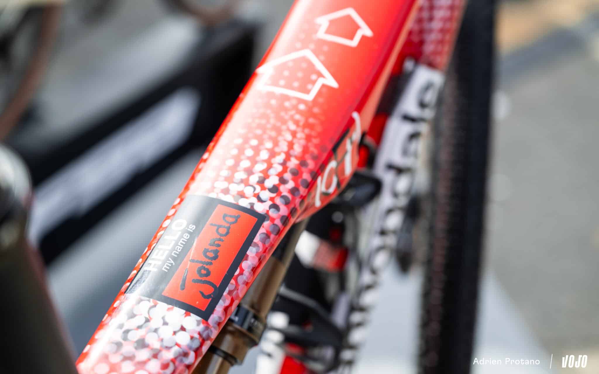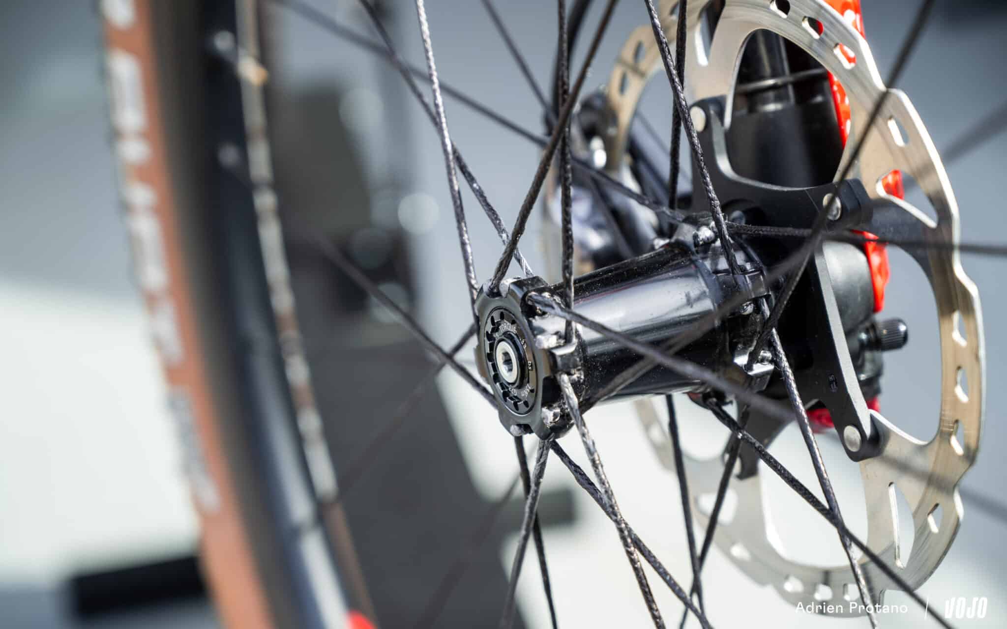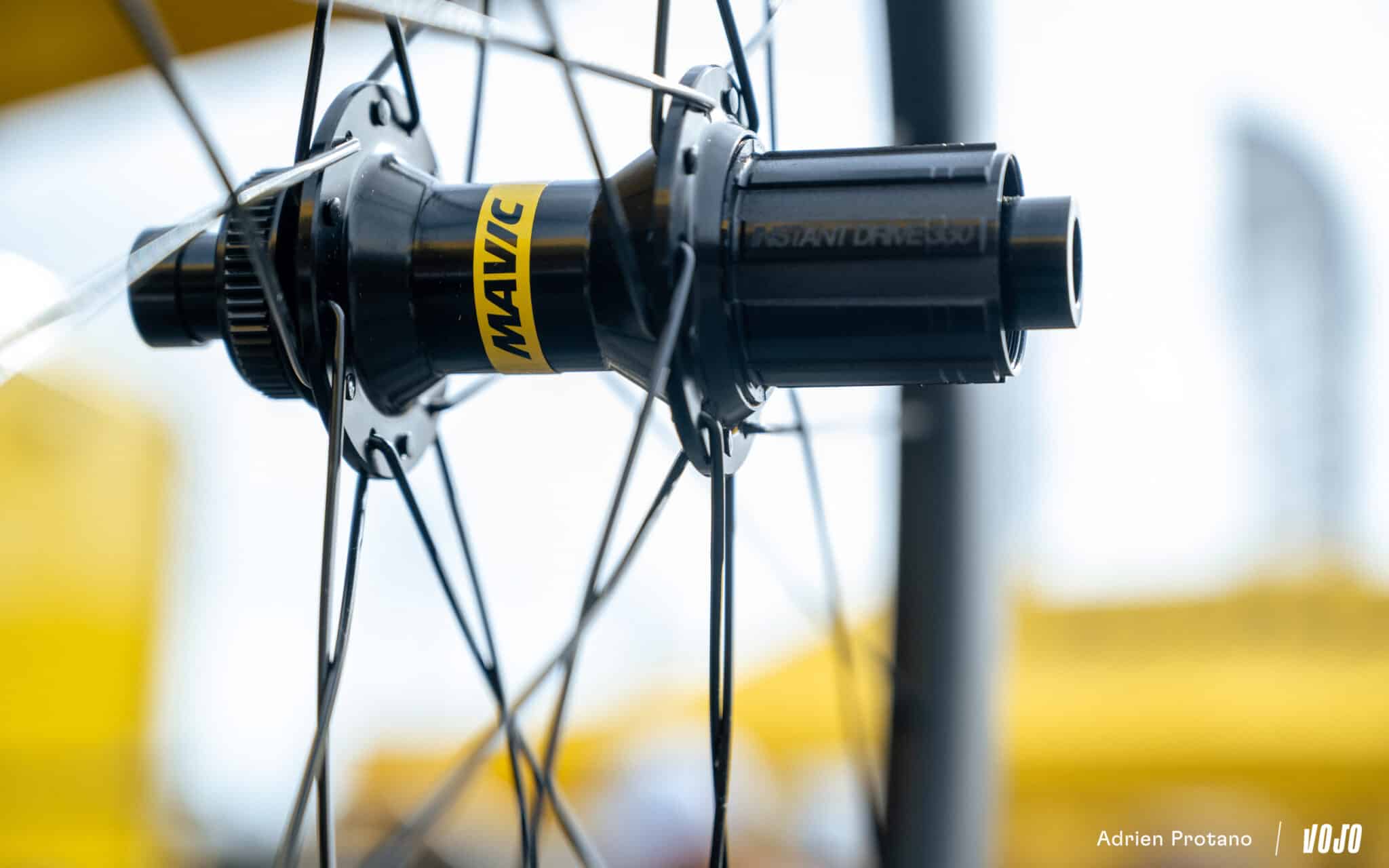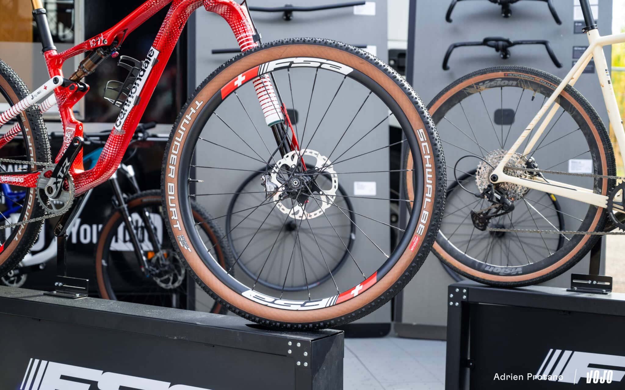 On a pu approcher les roues prototypes utilisés par certains pilotes du Cannondale Factory Racing sur les manches de coupe du monde, à l’image de ce vélo « championnat du monde » de Jolanda Neff. Il s’agit là d’une paire de roues FSA à rayons Berd… qui ne sont pas encore au catalogue de la marque !