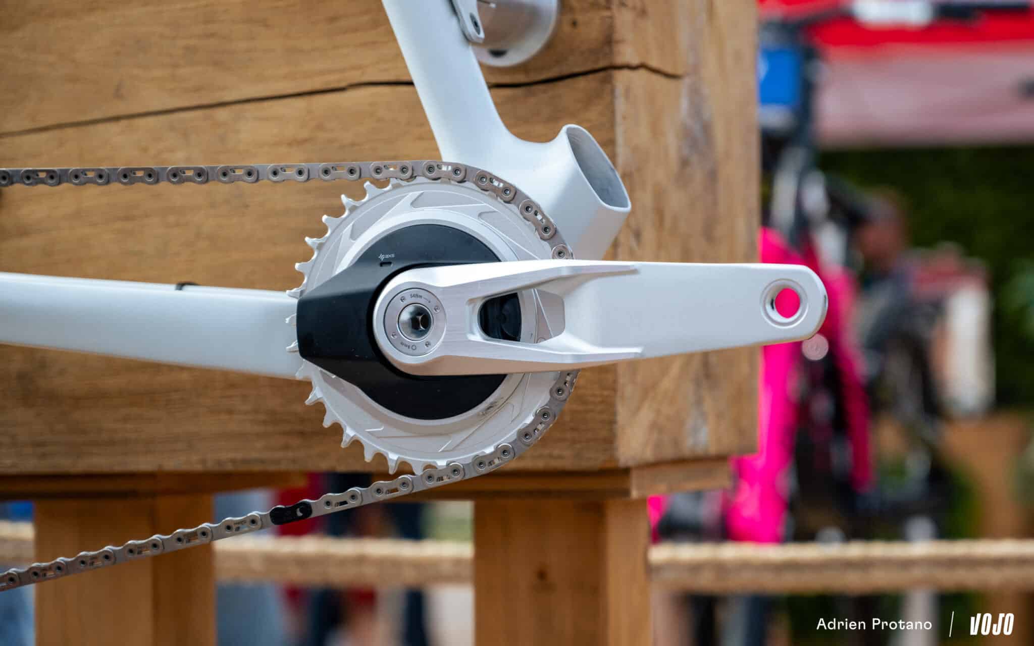 On notera que le pédalier XO intègre le capteur de puissance d’une façon similaire aux groupes dédiés à la route de la marque… que l’on avait notamment aperçu sur le vélo de Nino Schurter à l’occasion de sa dernière coupe du monde : Bike check | Le Scott Spark RC de la dernière coupe du monde de Nino Schurter.