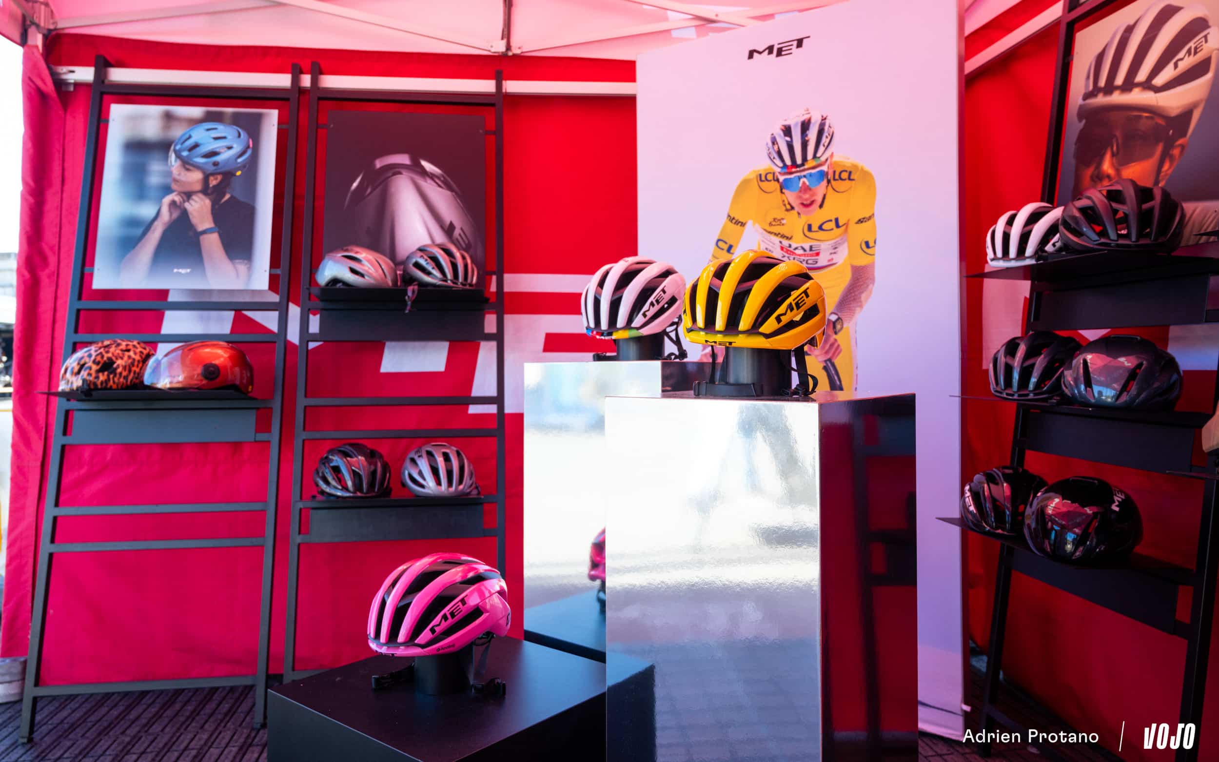 La marque d’équipement MET nous accueille avec son nouveau casque route/gravel, largement mis en avant par un certain Tadej Pogacar. Met annonce « 40% de protection supérieure et une amélioration de 15% de la ventilation au sein du casque par rapport à la génération précédente ».