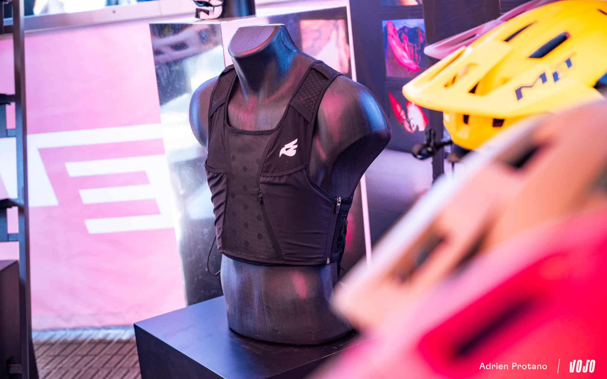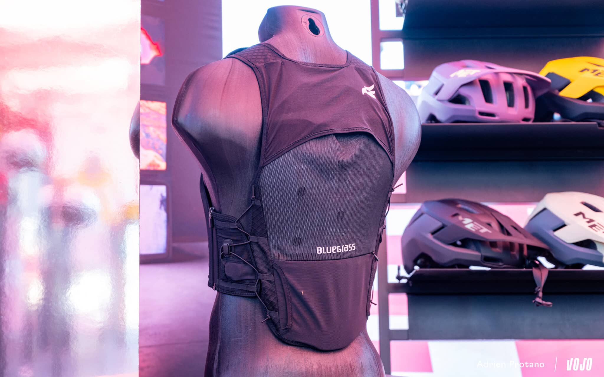 Un gilet de protection Bluegrass (la marque de protections de MET) attire notre curiosité dans le coin du stand. Parfait mix entre gilet d’hydratation et protection dorsale, celui-ci permet d’embarquer une poche à eau, offre diverses poches ici et là, et embraque une protection frontale et dorsale. Pas plus d’informations de la marque à ce stade, il va falloir attendre.