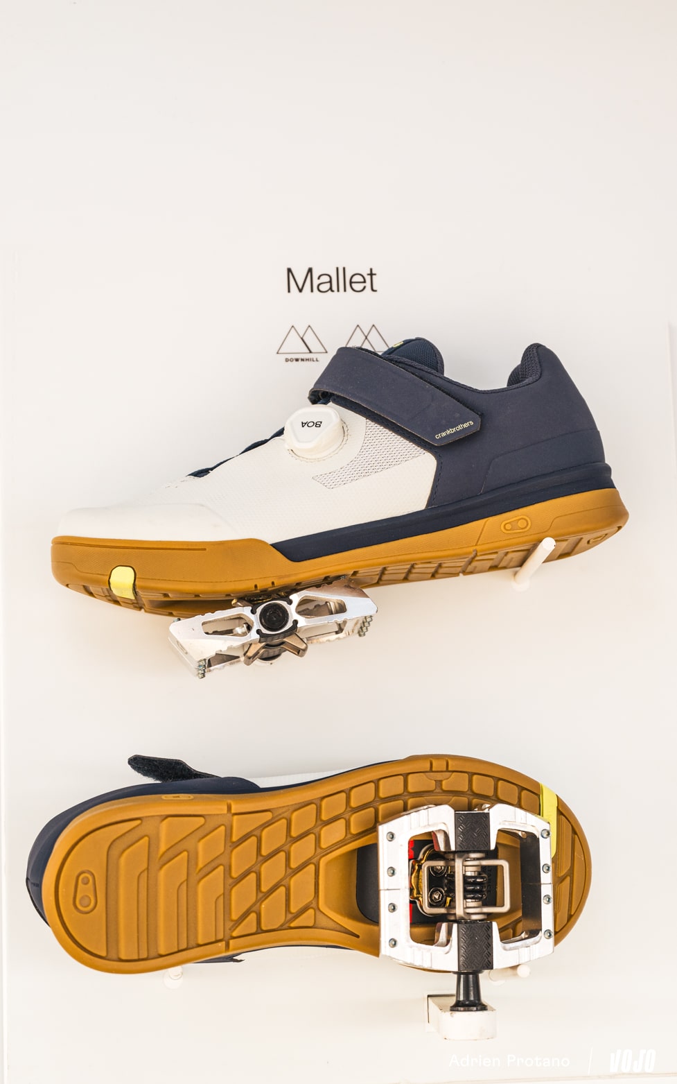 Sur le stand Crankbrothers, les pédales Mallet DH édition Loïc Bruni brillaient presque autant que leur pilote, tandis que juste à côté, trônaient les derniers coloris des chaussures Mallet de descente/enduro.