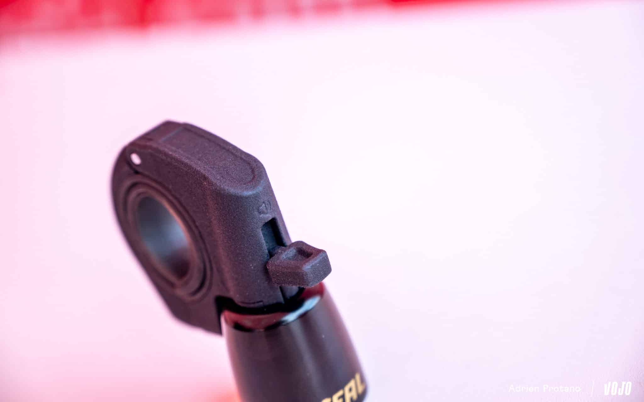 Zéfal a emmené une petite sonnette pour avertir les autres usagers sur les sentiers qui vient se fixer directement sur le cintre, et qui dispose d’un petit loquet pour la garder silencieuse.