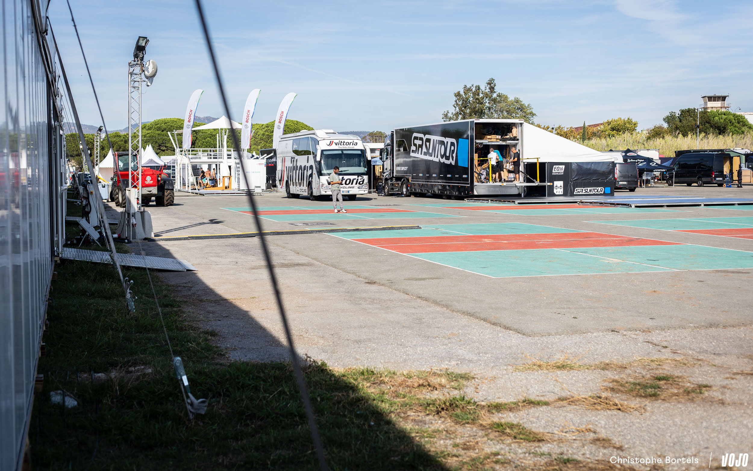 Mi-septembre, soit deux semaines avant le Roc, débute l’installation des infrastructures sur la Base Nature de Fréjus. Zones de départ et d’arrivée, des kilomètres de barrières le long de ces zones et tout autour du site…