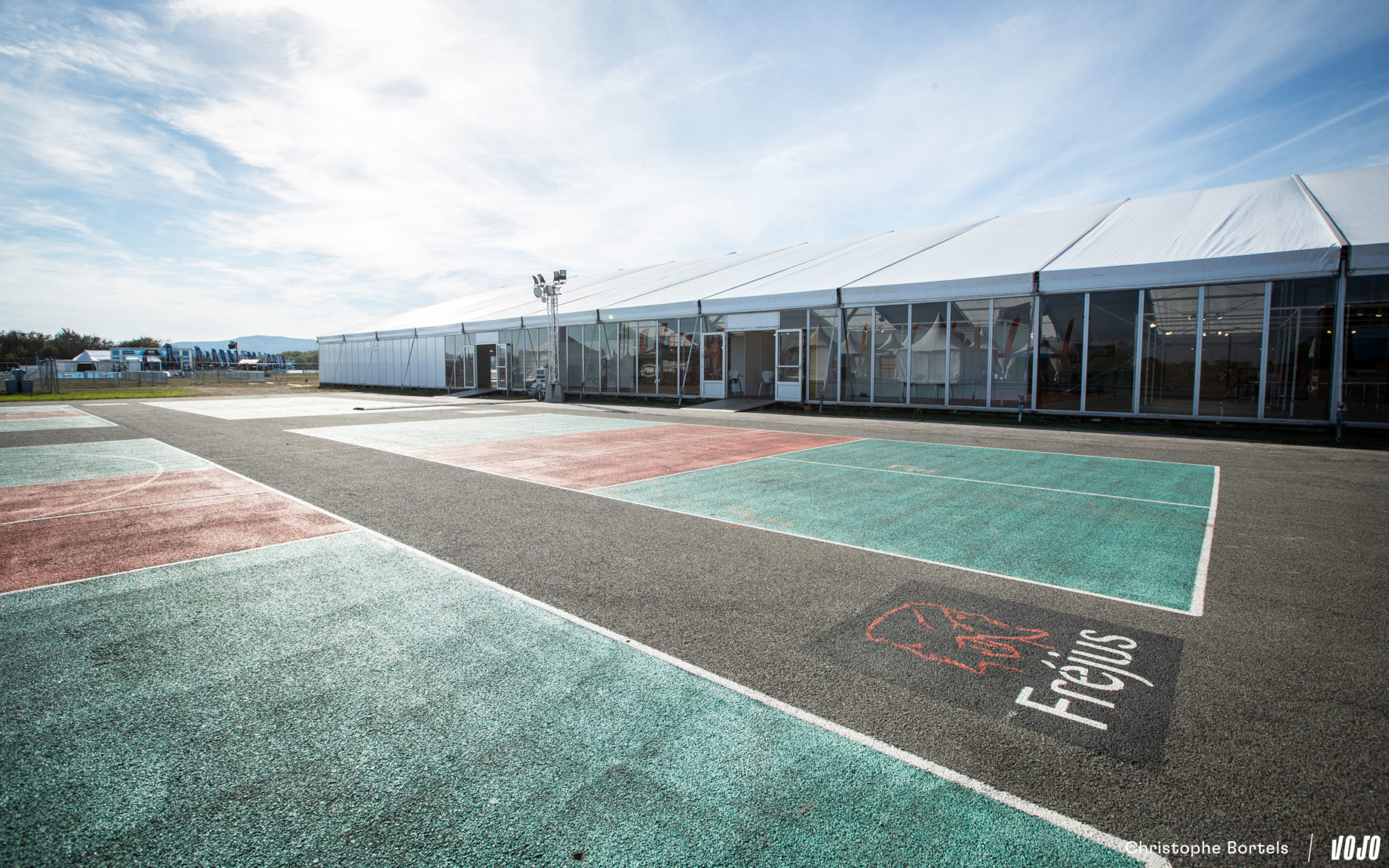 Mi-septembre, soit deux semaines avant le Roc, débute l’installation des infrastructures sur la Base Nature de Fréjus. Zones de départ et d’arrivée, des kilomètres de barrières le long de ces zones et tout autour du site…