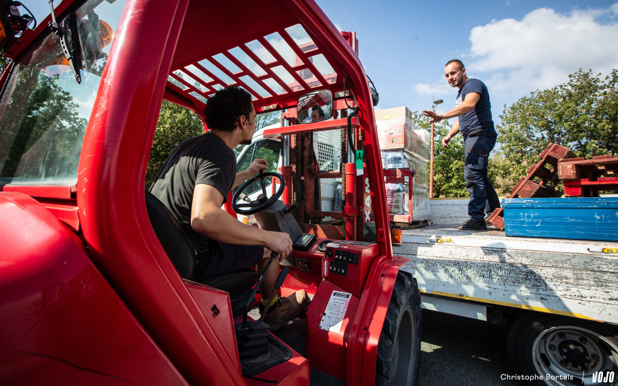 On l’imagine sans peine, les quantités dont il est question ici sont énormes ! Et quasi tout est réuni en un même lieu, dans une grande tente installée provisoirement à proximité de Roquebrune-sur-Argens. De ce stock, alimenté en début de semaine par les différents fournisseurs, partent avec une journée d’avance les nourritures et boissons destinées à la vingtaine de ravitaillements installés sur les différents parcours. Le tout est dispatché et livré par des camions de la ville de Fréjus. Vu comme ça, la tente ne semble pas si remplie, mais il y a notamment à l’extérieur pas moins de 60 palettes de bouteilles d’eau, ce qui d’après un rapide calcul équivaut tout de même à environ 50.000 litres d’eau !