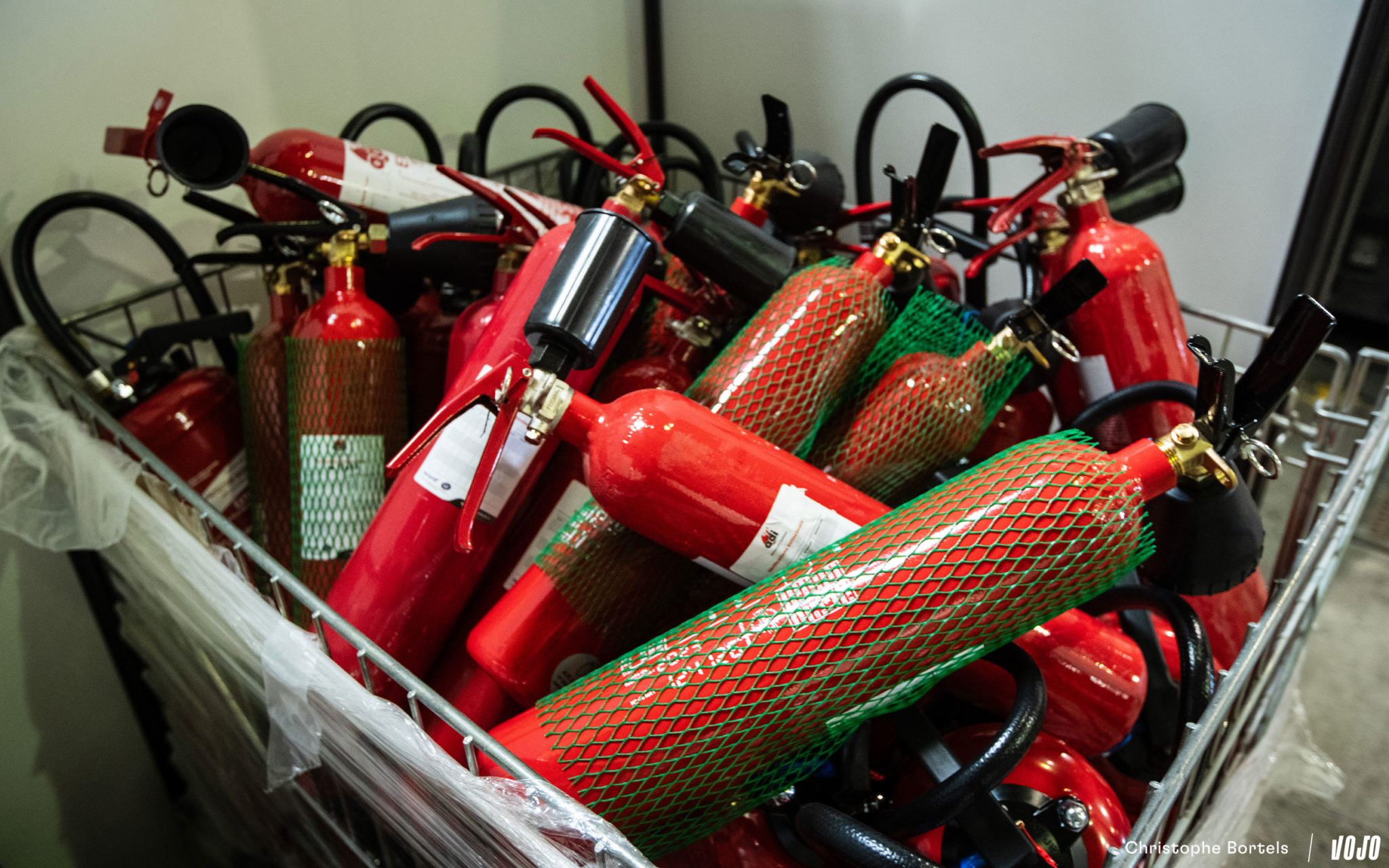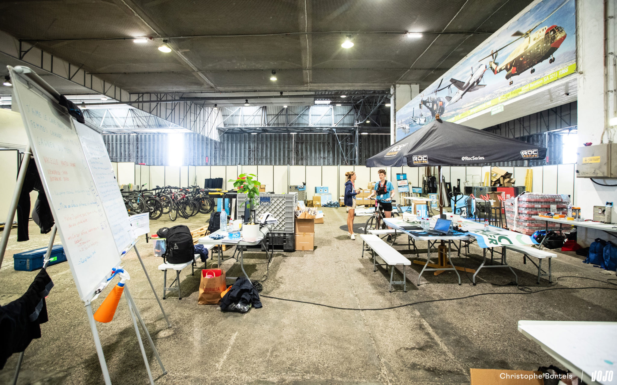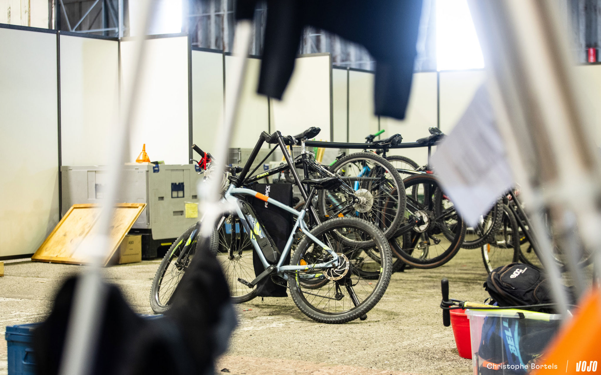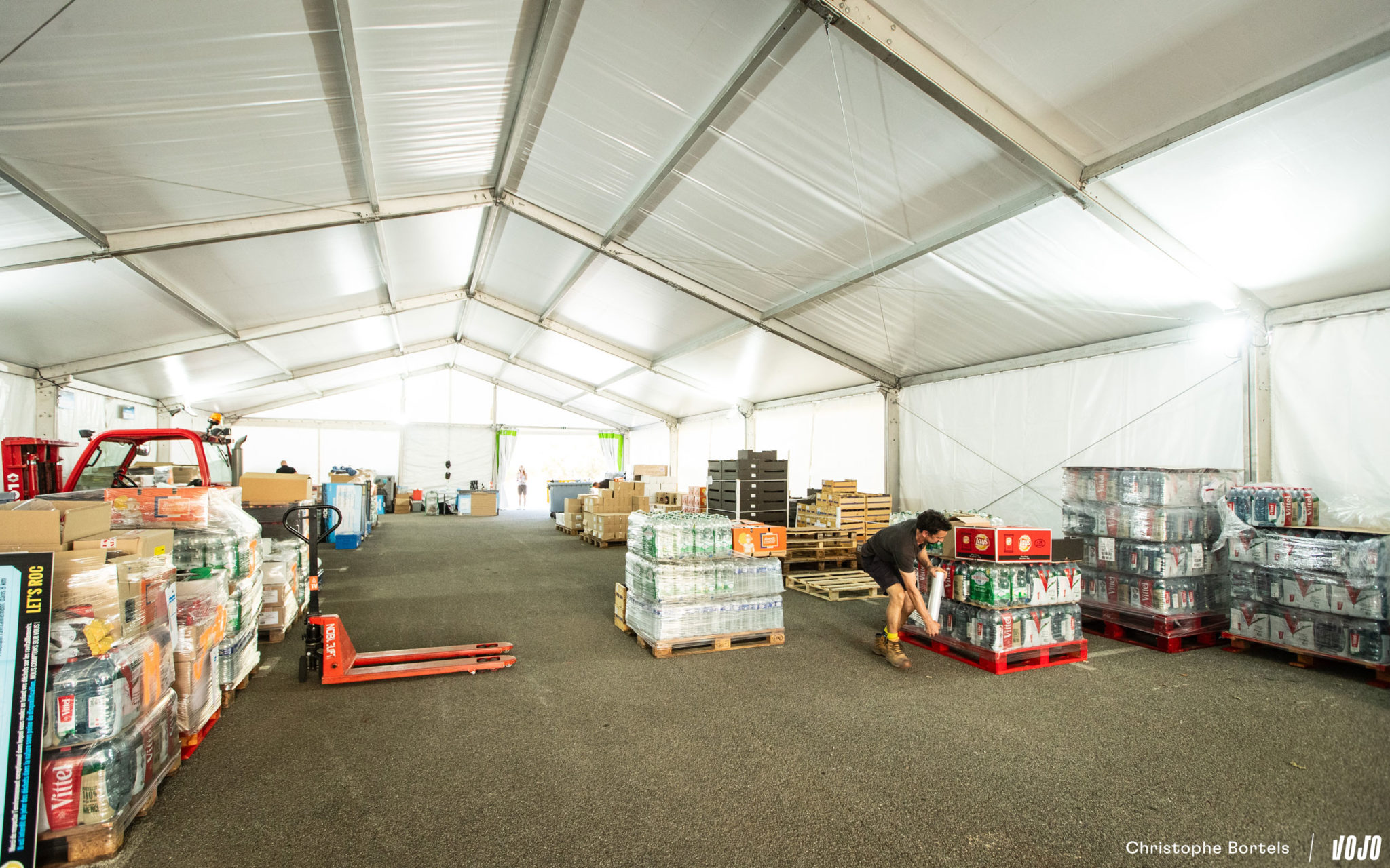 En plein milieu du gigantesque hangar qui accueille aussi les inscriptions trône le stock logistique. On y retrouve pas mal de matériel de l’organisation comme de la signalétique, les stocks de t-shirts pour les finishers, des extincteurs, etc, mais aussi du matériel envoyé en amont de l’évènement par les exposants et qui sera récupéré pendant la semaine. Et puis il y a également des vélos mis à disposition par l’orga… pour se déplacer sur le vaste site qui accueille le Roc d’Azur !