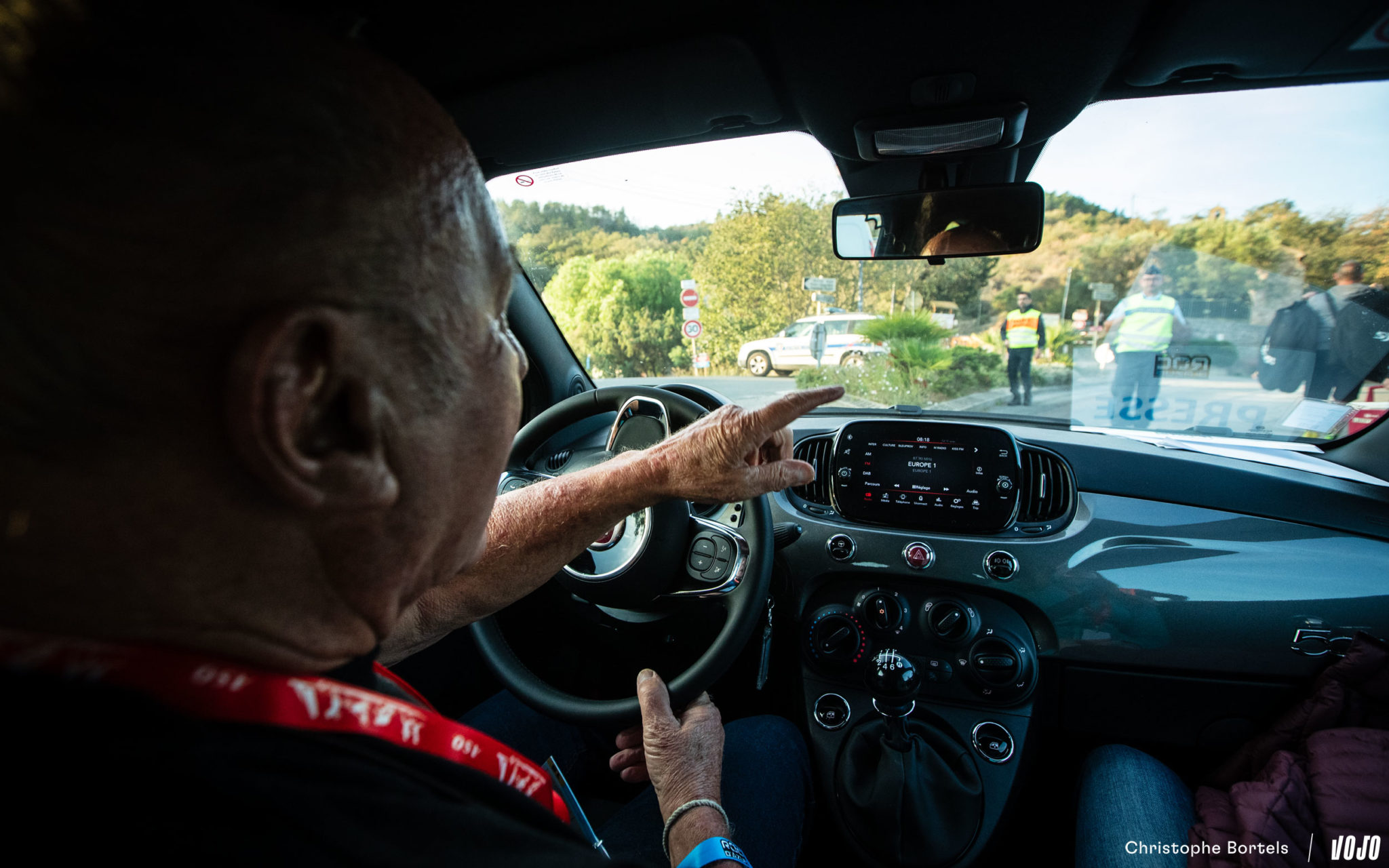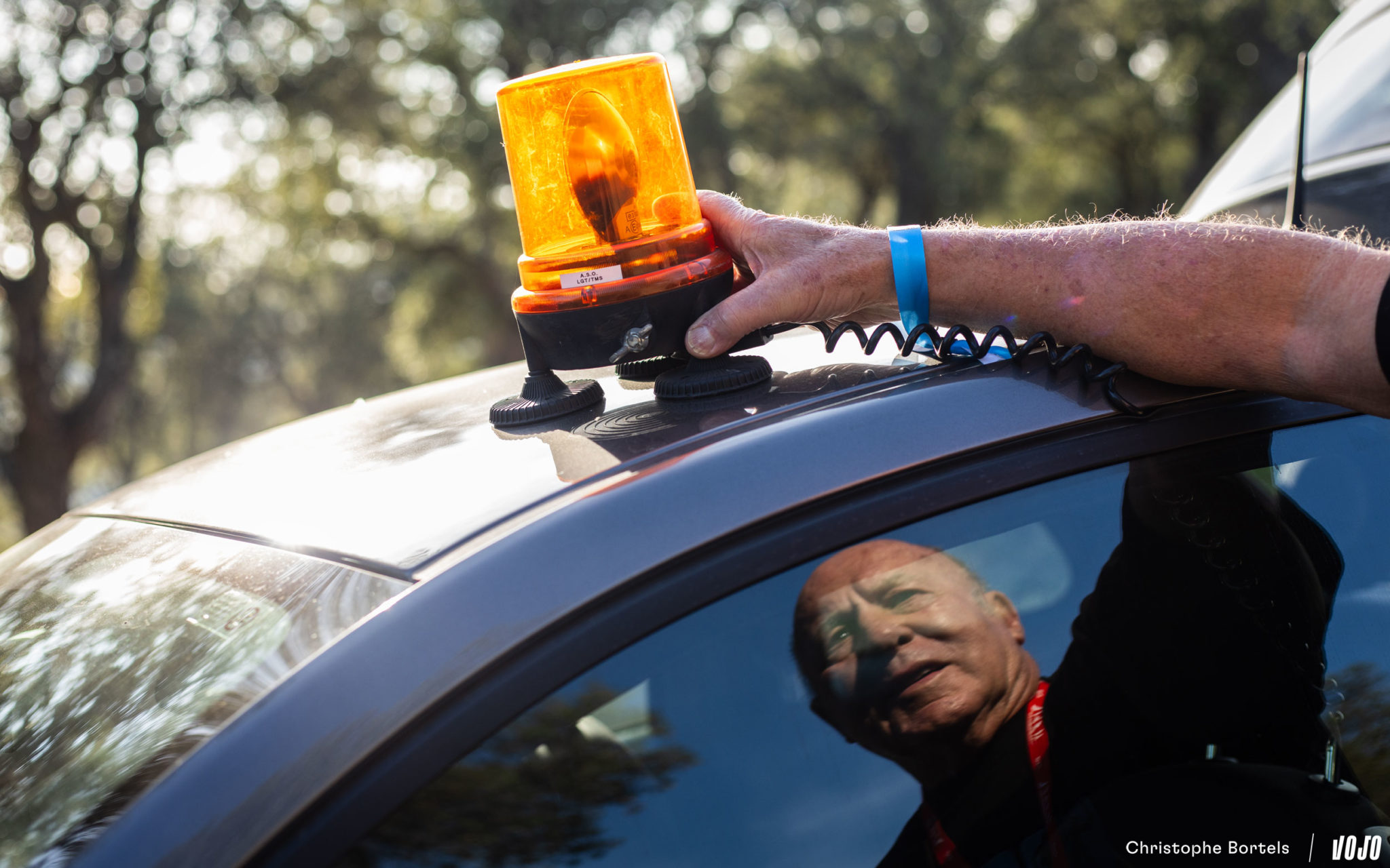 Les journalistes ont également quelques privilèges quand il s’agit de couvrir les épreuves comme on le fait régulièrement. Pour faciliter le déplacement des secours et limiter les éventuels problèmes, la circulation est très limitée sur certaines portions de route. Alors pour pouvoir se déplacer rapidement sur les spots mythiques comme le Fournel ou le Bougnon, l’organisation met à notre disposition des voitures et des motos avec gyrophares et laissez-passer, et surtout des chauffeurs et pilotes qui nous déposent au plus près de l’action. Claude, qui prend ici la pose, est l’un de nos chauffeurs réguliers depuis pratiquement 10 ans, merci à lui !