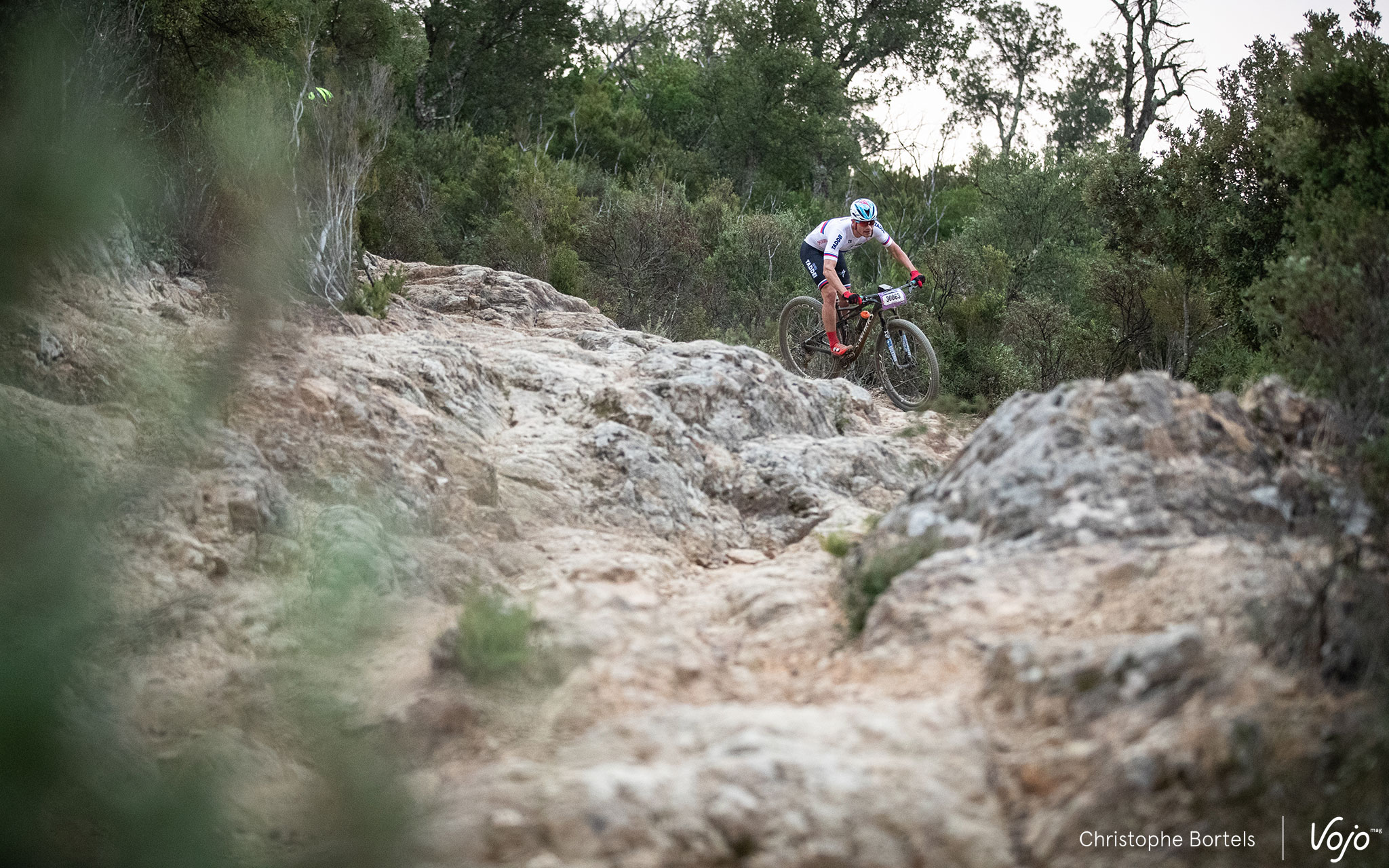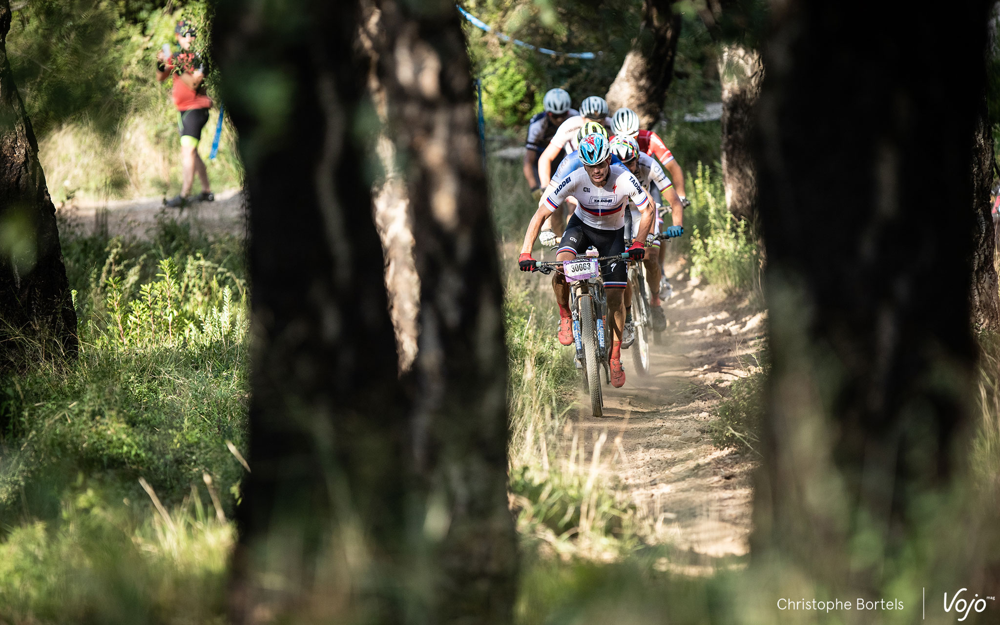 Sébastien Carabin, champion de Belgique, n’est pas bien loin… mais il a cassé une fixation de sa tige de selle dans les premiers kilomètres ! Heureusement, son assistance dispose d’une tige de selle de rechange en bas du Fournel mais il perdra du temps et le contact avec la tête de course.
