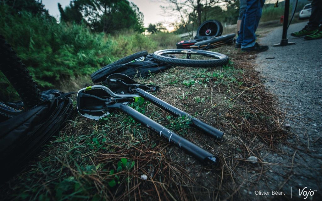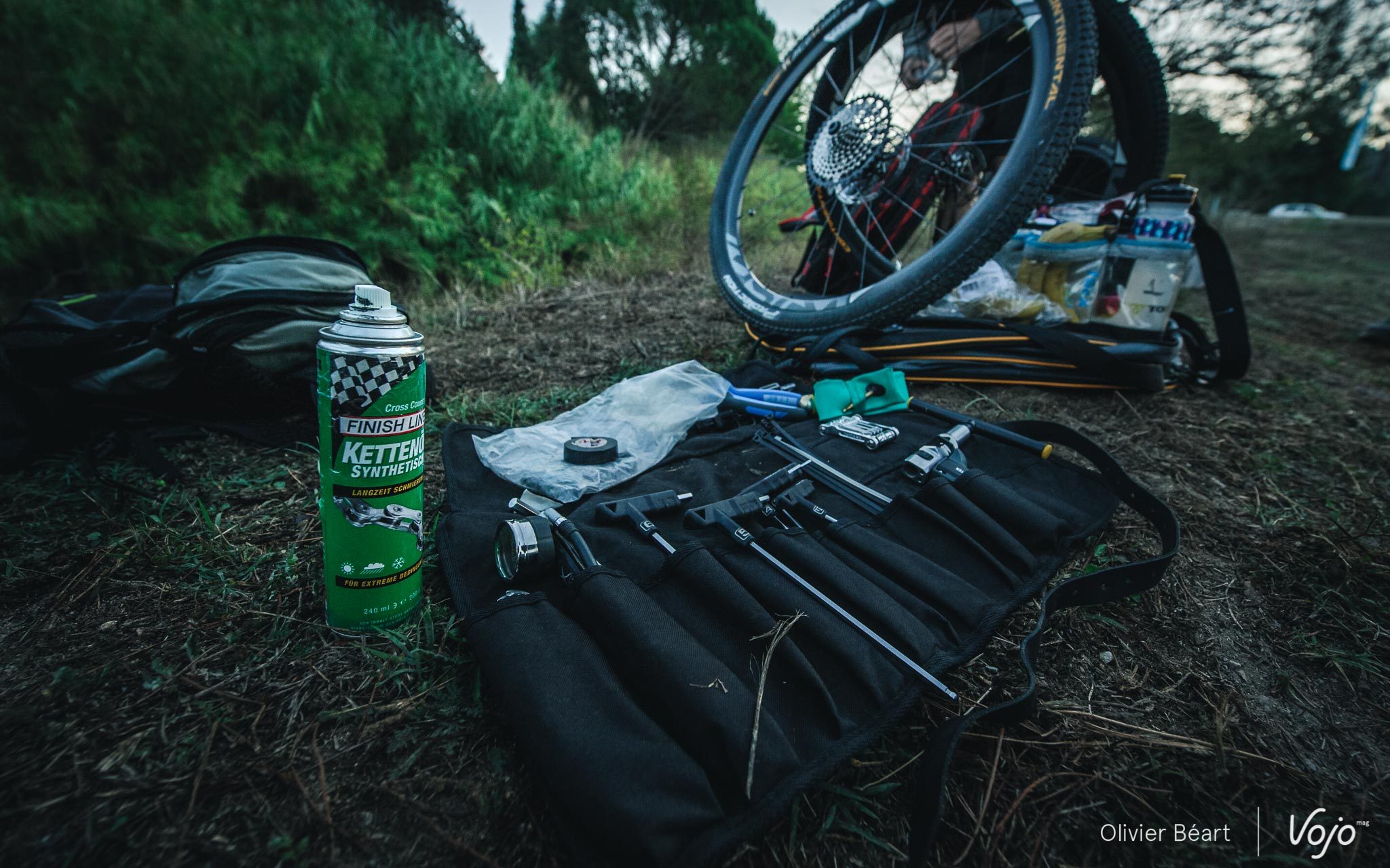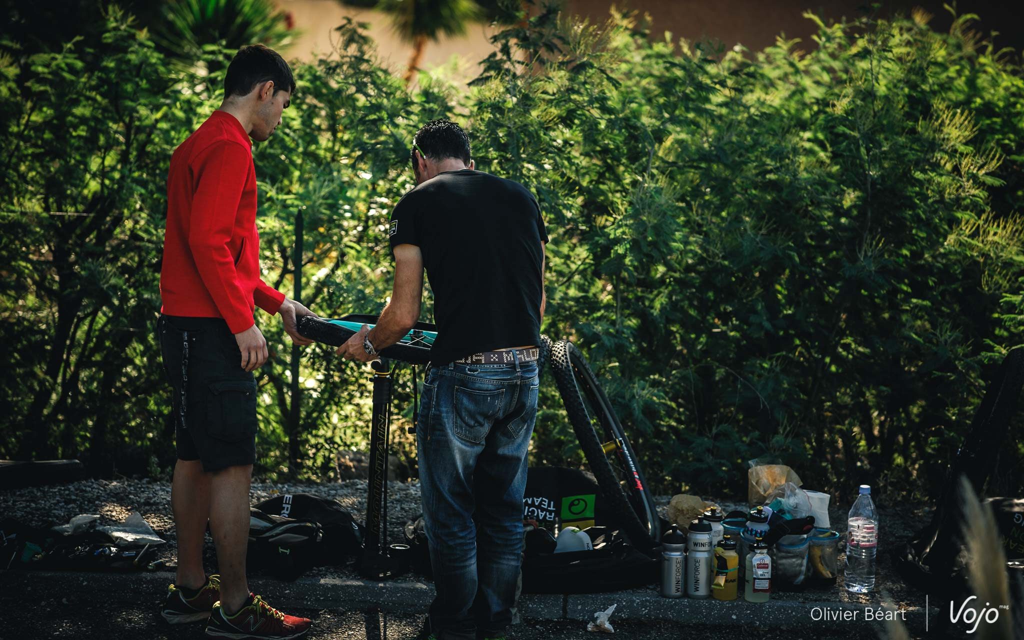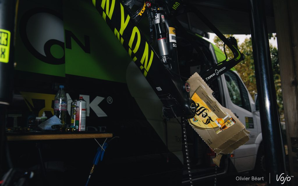 De son côté, le mécano du team démonte entièrement les vélos pour s’assurer que tout est en ordre.