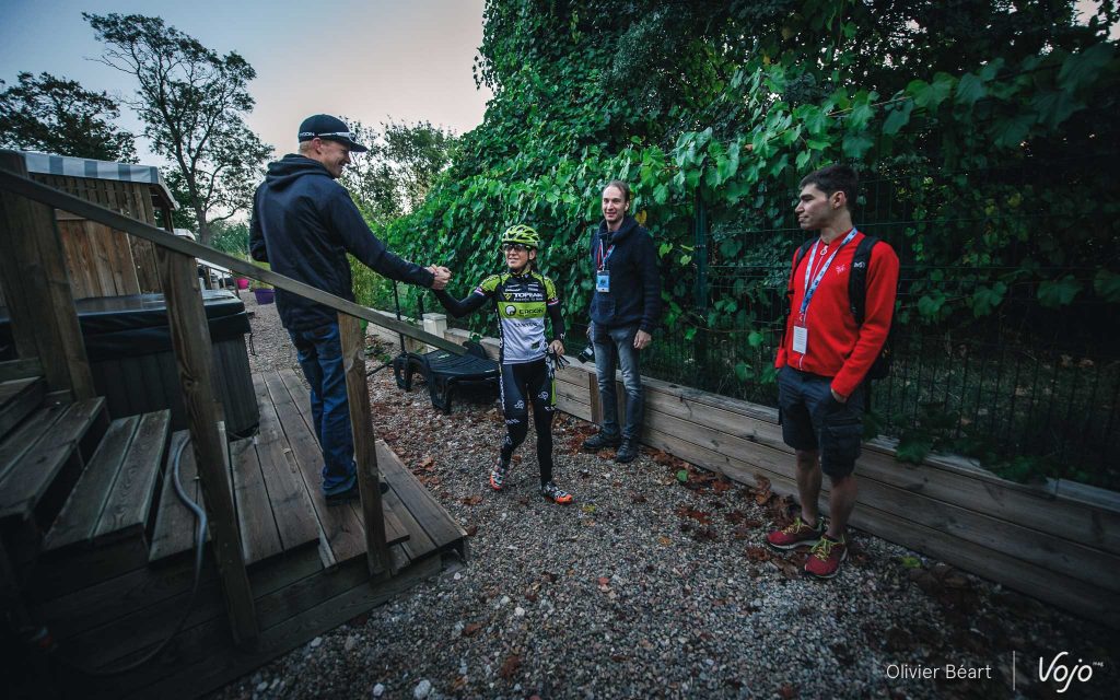 Sur la ligne, nous la retrouvons tout sourire en train d’échanger quelques mots avec la deuxième dame du jour, Tanja Zakelj. On en termine avec le sentiment du devoir accompli avec une petite photo souvenir : « Thanks Benjamin for the great support ! »