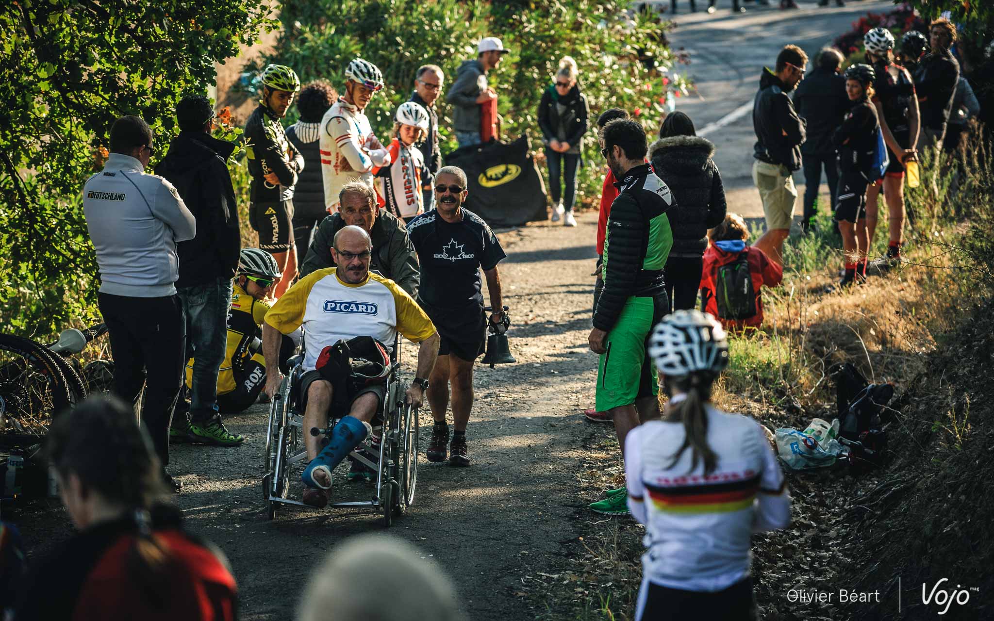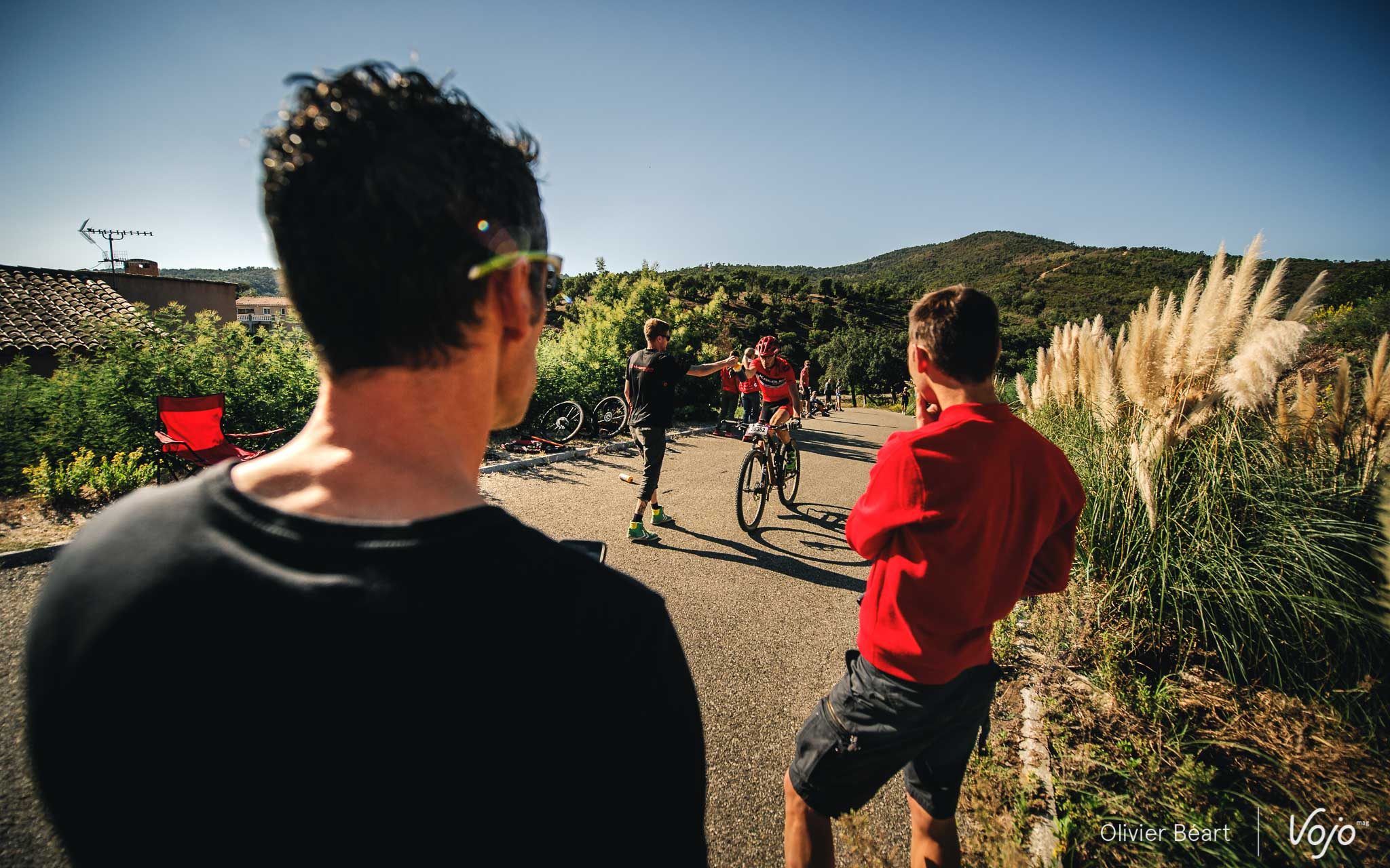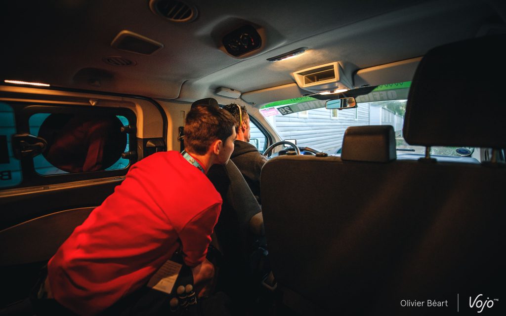 Le rituel est déjà bien rodé et Benjamin sait déjà ce qu’il a à faire. En posant les roues, il demande : « Tiens, vous pouvez aller où vous voulez pour assister les coureurs ? »