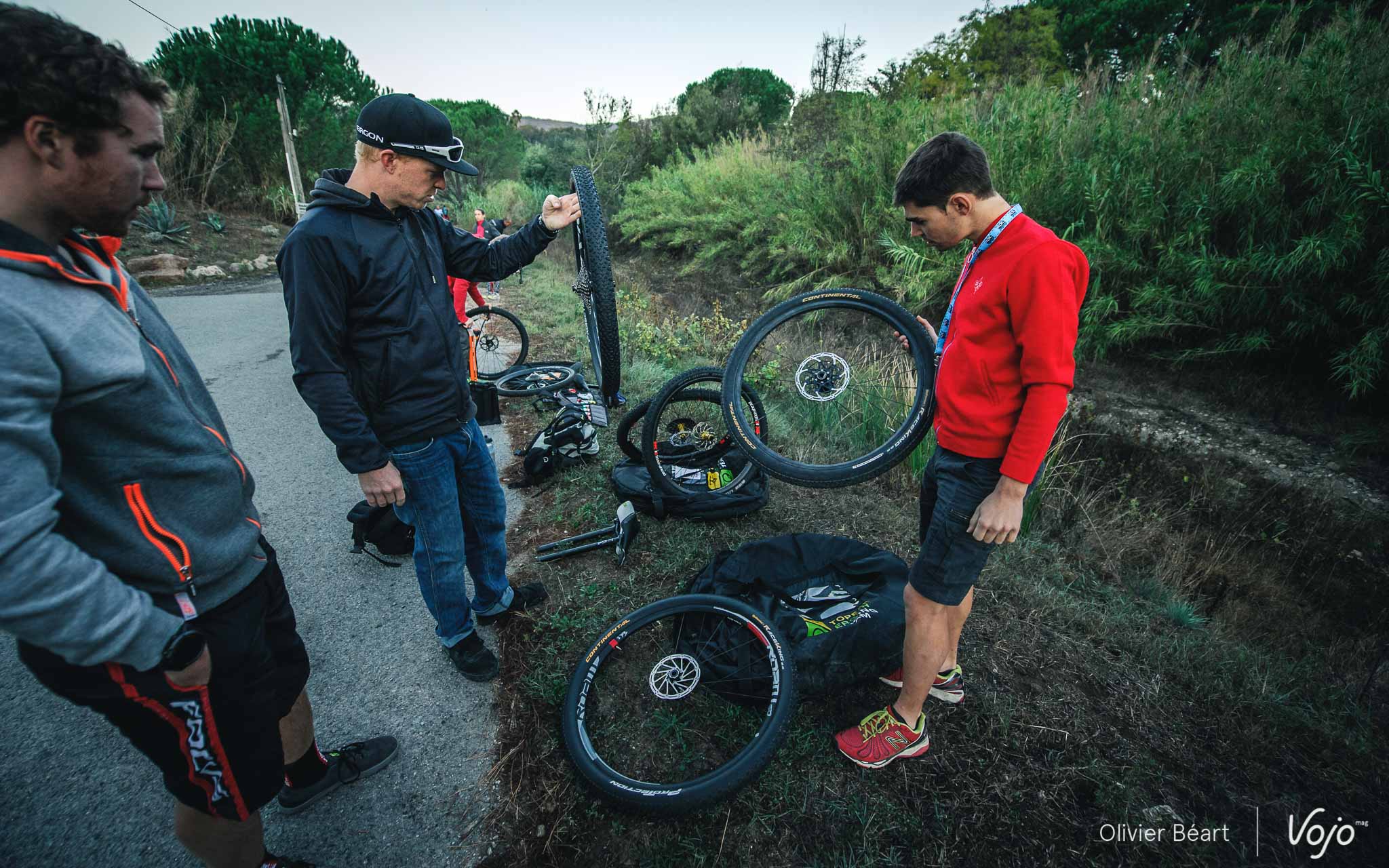 A l’issue de cette journée, notre homme ne repart pas les mains vides: un kit de poignées Ergon et des pneus Continental Race King en version « Team » lui sont offerts. « J’ai vu que tu t’intéressait beaucoup à la technique, je crois que tu vas apprécier », lui dit Dave en le remerciant d’une tape sur l’épaule. Quant à Benjamin, quand nous lui demandons ce qu’il a retenu de cette journée, il nous sort spontanément : « C’était vraiment exceptionnel, j’ai trop de choses dans la tête pour vraiment dire ce que je ressens. Mais en tout cas, maintenant, je sais que ça représente pour mon père quand il me suit sur les courses. Il doit en ch… parfois. Aujourd’hui, je sais mieux ce que cela représente. C’est juste énorme… »