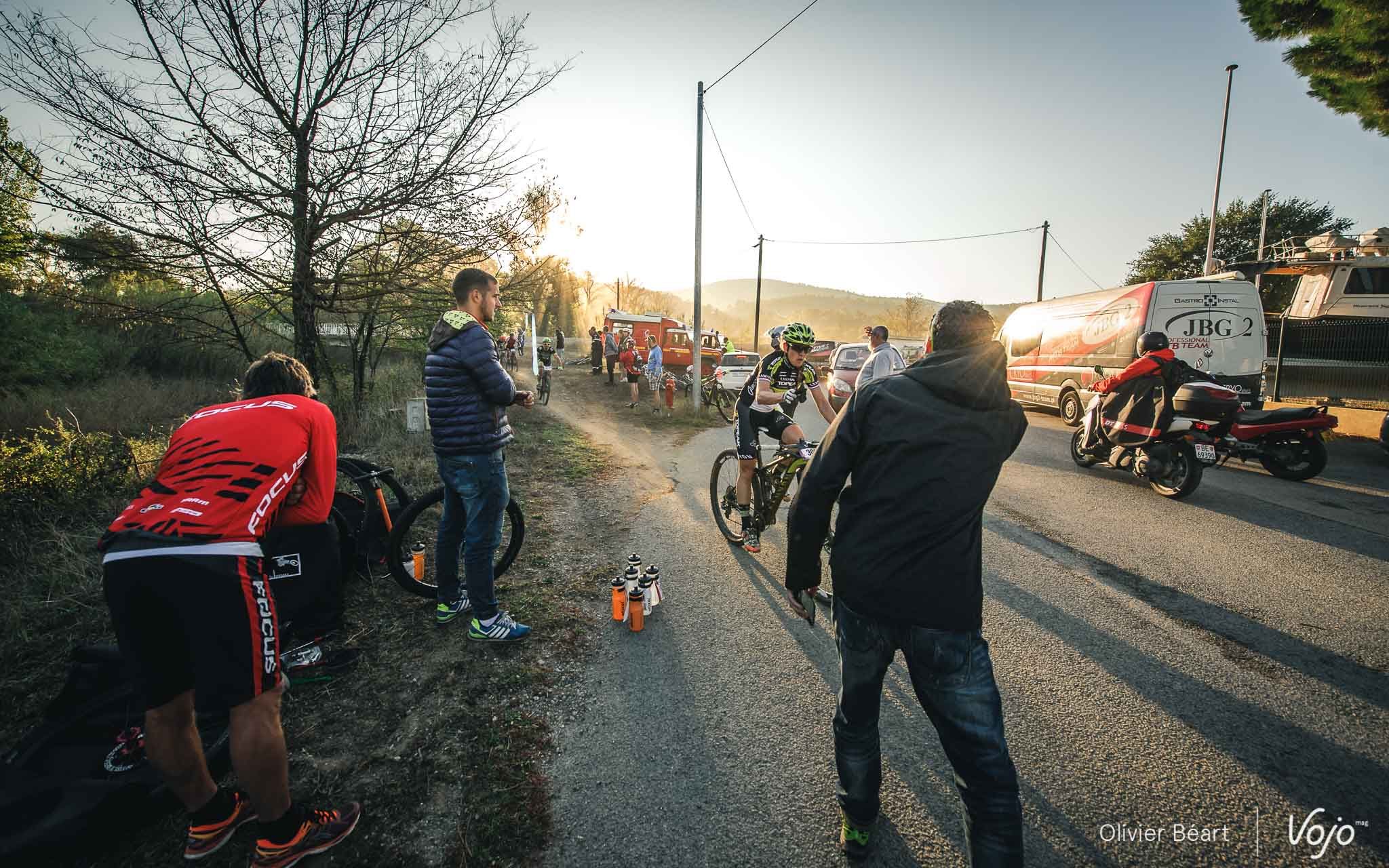 En fait, normalement, non, mais le Roc est une exception, comme l’explique le team manager : « C’est un marathon USI World Series, mais l’épreuve est tellement importante, avec des milliers de personnes, que c’est presque impossible de fixer des zones comme sur les autres courses. Et je trouve que ce n’est pas plus mal. Ca permet de faire parler l’expérience et de jouer aussi un peu sur la stratégie. En marathon, c’est d’une importance capitale de connaître ses coureurs et de savoir quand ils peuvent avoir besoin de nous ».