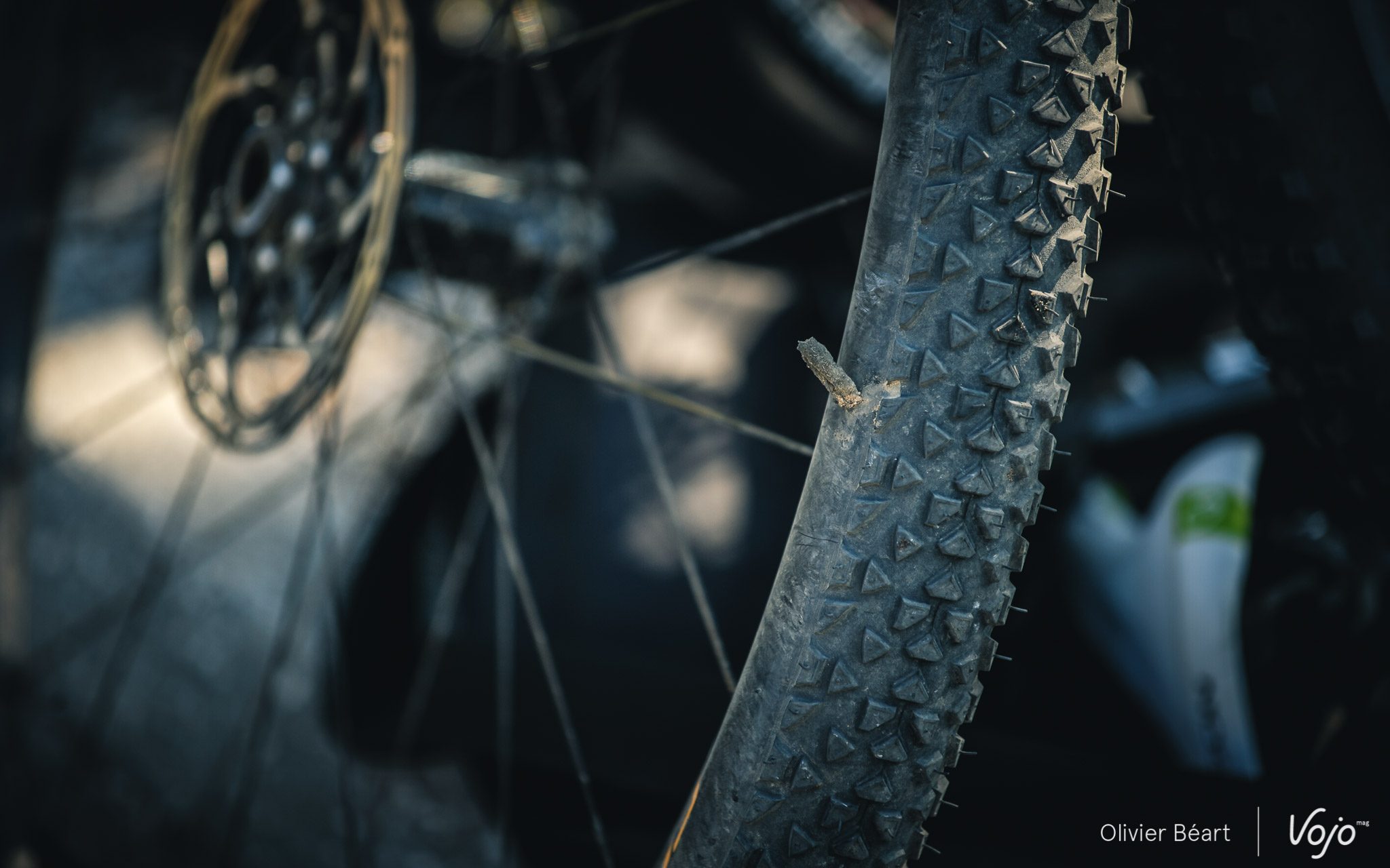 Aïe, Christian Hynek arrive et il a crevé ! « J’ai réparé mais j’ai perdu pas mal de temps. C’est mort pour la victoire, je préfère changer ».