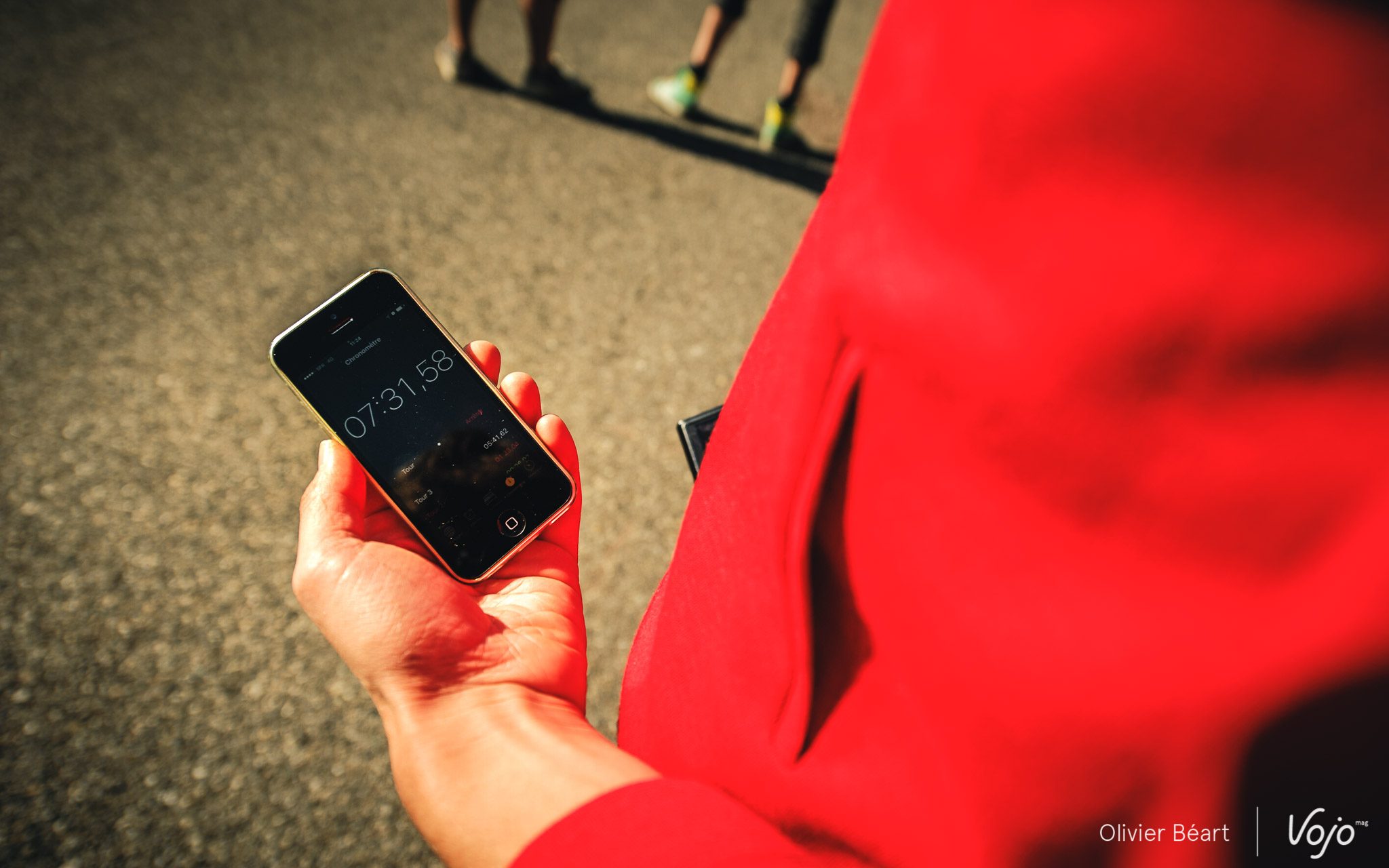 Directement, il charge Benjamin d’une mission capitale : mesurer les écarts avec les poursuivants. L’info est directement envoyée par sms à d’autres membres de l’équipe, postés un peu plus loin sur le parcours et qui vont pouvoir informer les coureurs.