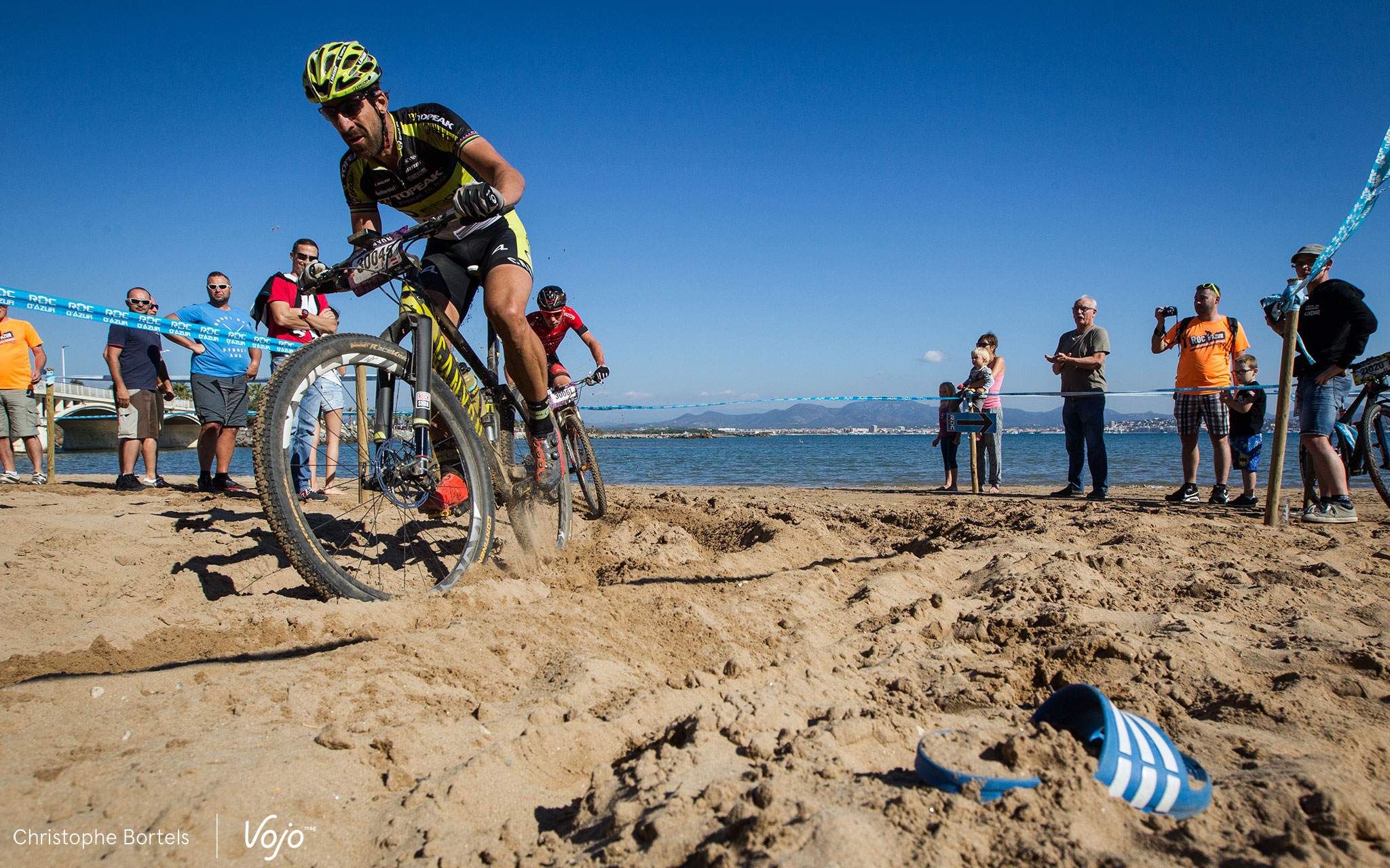 Victime d’un grave accident de la route début 2016, qui l’a laissé avec plusieurs vertèbres fraturées, l’ancien champion de France U23 qui s’était depuis tourné vers la route, n’est remonté sur son vélo qu’il y a quelques mois. Mais pour se motiver dans sa rééducation, il avait besoin d’un objectif : gagner le Roc d’Azur. Pour la petite histoire, il y a une semaine, son vtt n’était pas encore remonté. Et il n’avait pas encore de dossard. Sans compter que pendant l’épreuve, il a cassé la fixation d’une de ses chaussures (regardez bien l’image). Mais quand on revient de là où il est allé, on ne se laisse pas arrêter par ce genre de détails. Juste avant le Bougnon, seul Samuele l’accompagne encore. Et il ne va pas tarder à le lâcher !
