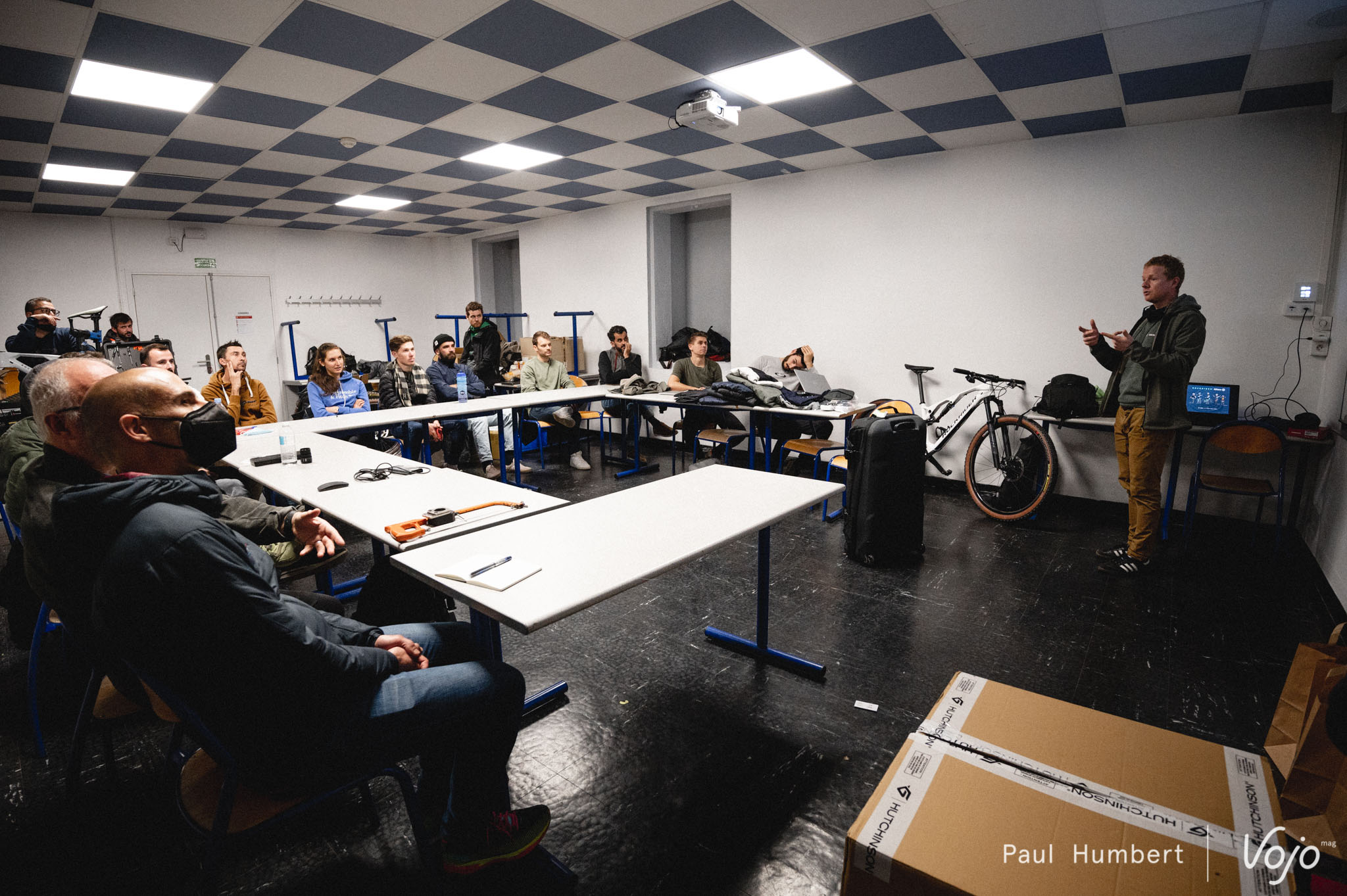 En revanche, des équipes de TRP et d’Hutchinson avait fait le déplacement, pour mieux cerner les besoins des coureurs et les aider à choisir quels produits ils utiliseront tout au long de l’année. On a ainsi vu Joël Balez, responsable R&D pour la marque française, passer du temps avec chaque athlète pour leur expliquer les subtilités entre les différentes carcasses, leurs avantages et inconvénients…