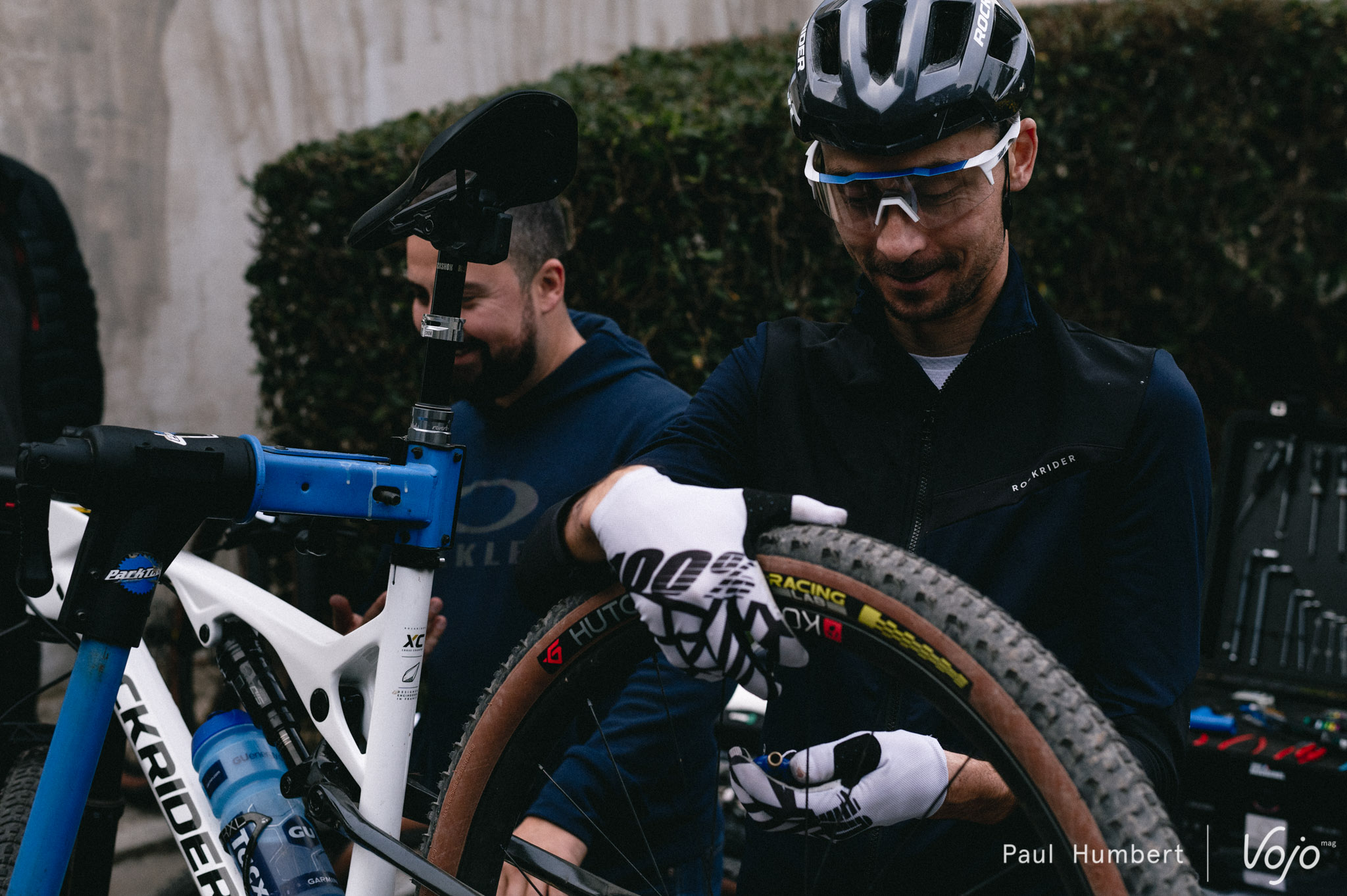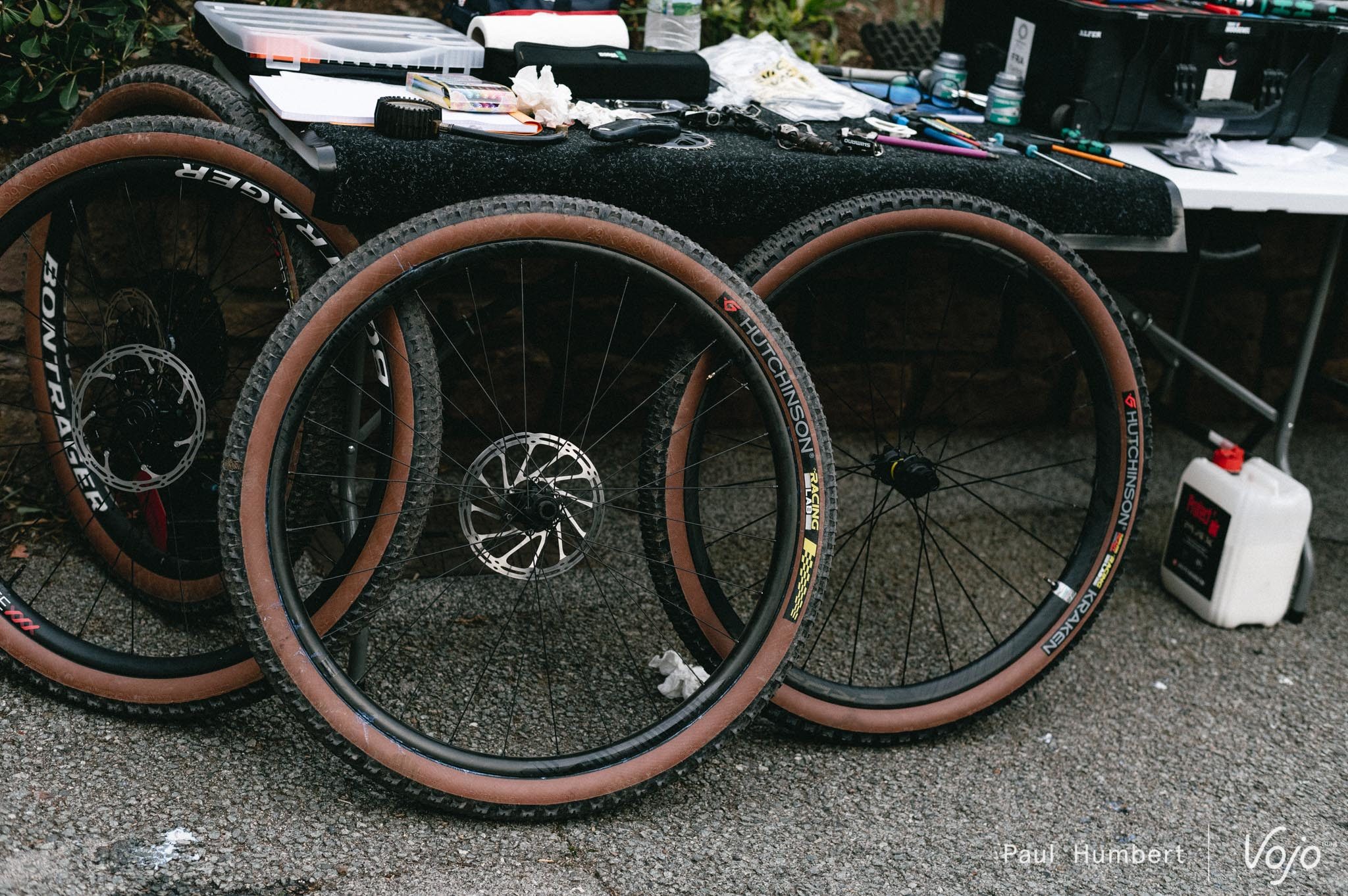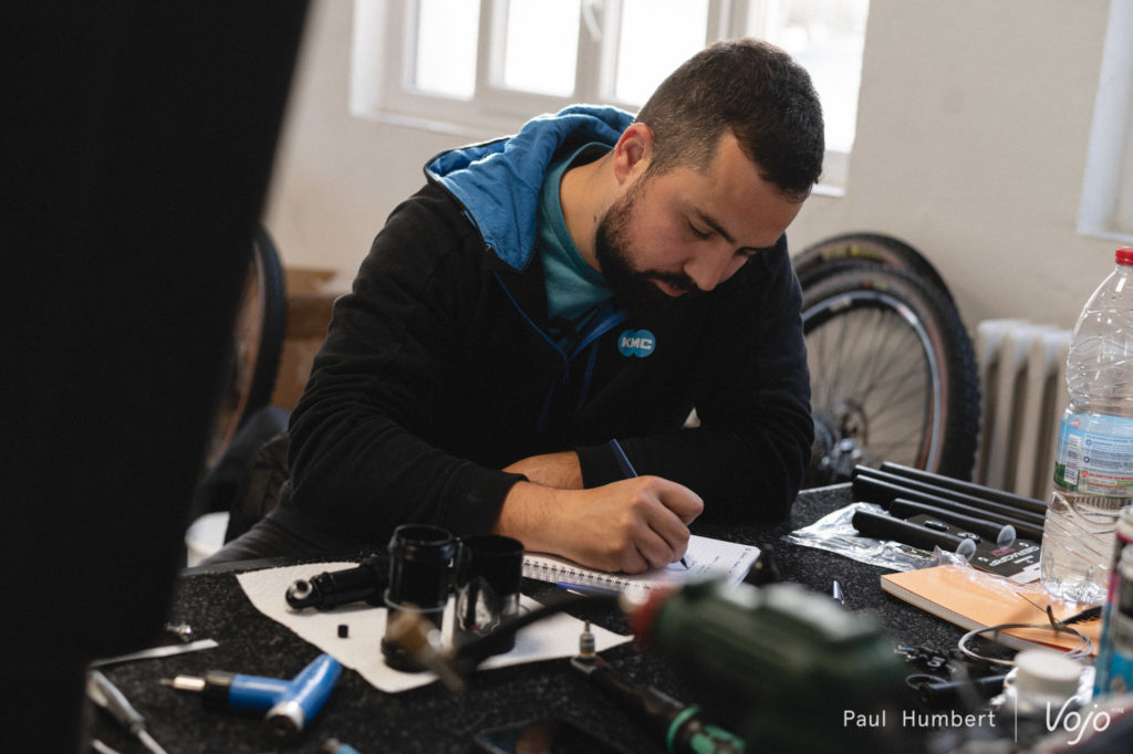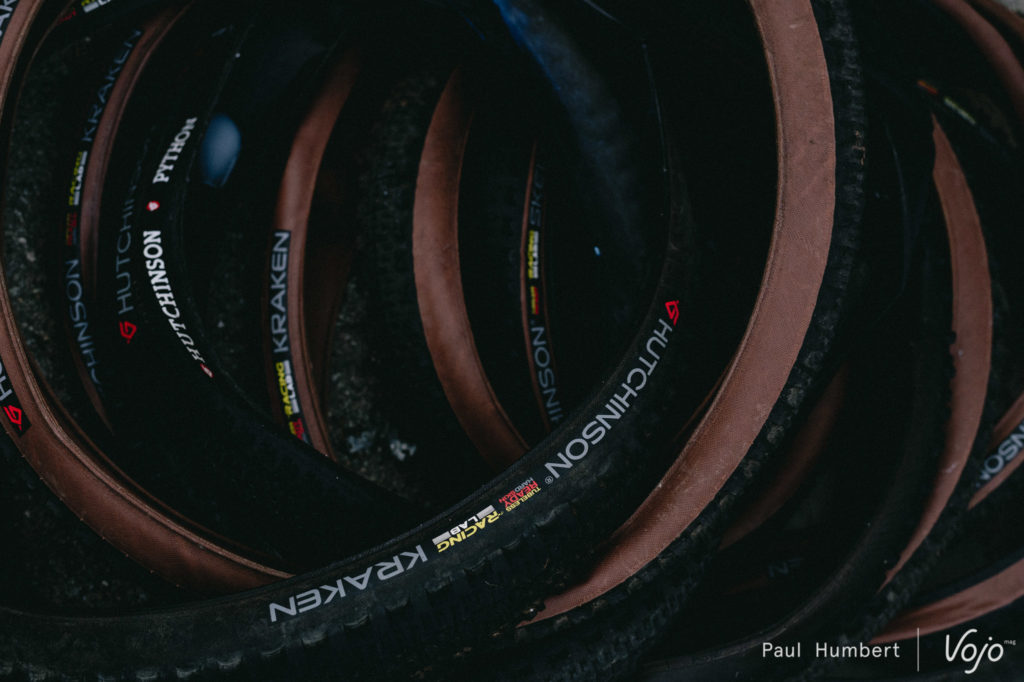 En revanche, des équipes de TRP et d’Hutchinson avait fait le déplacement, pour mieux cerner les besoins des coureurs et les aider à choisir quels produits ils utiliseront tout au long de l’année. On a ainsi vu Joël Balez, responsable R&D pour la marque française, passer du temps avec chaque athlète pour leur expliquer les subtilités entre les différentes carcasses, leurs avantages et inconvénients…