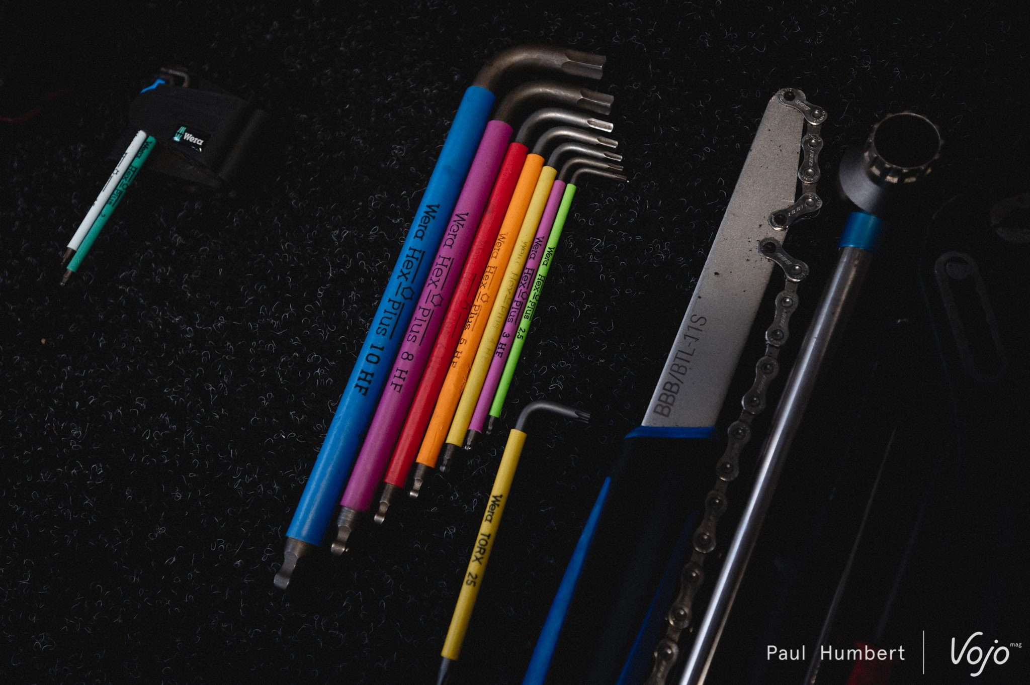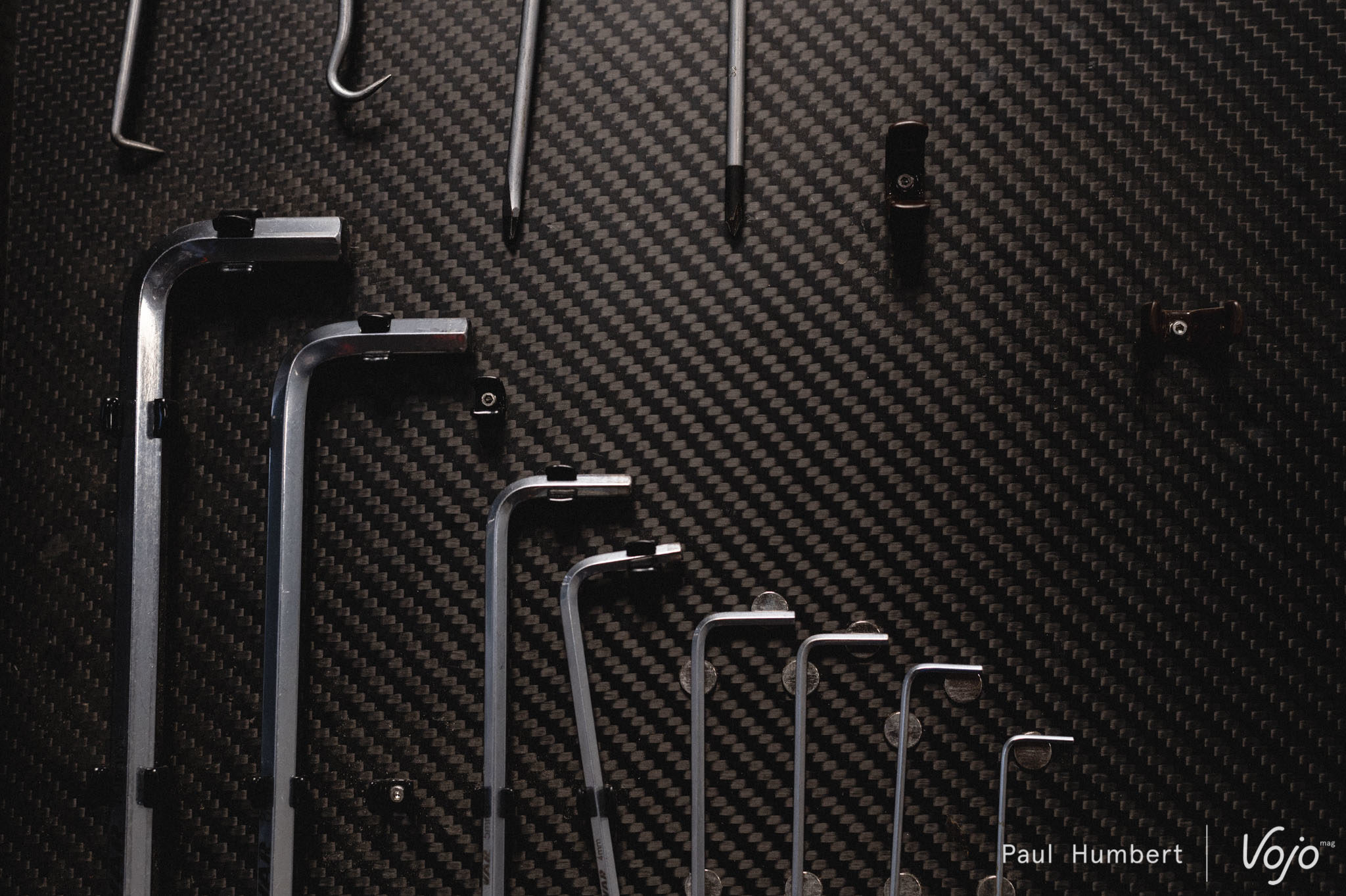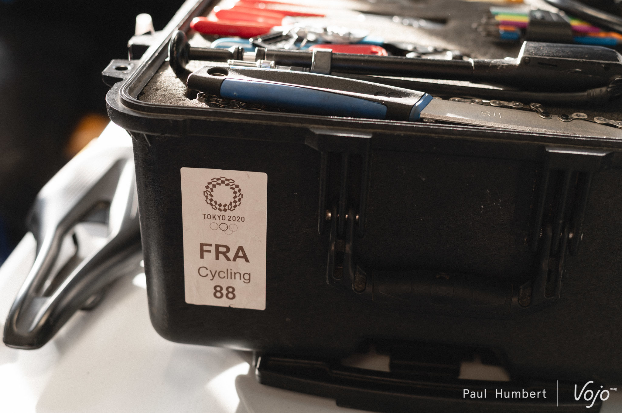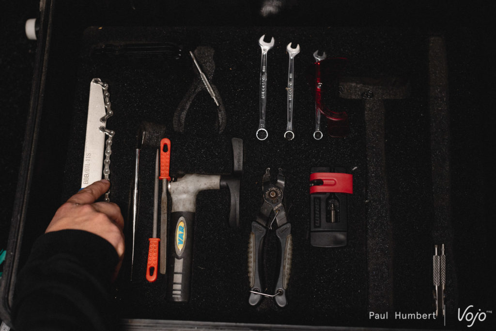 On en profite au passage pour faire un petit tour dans sa caisse à outils juste pour le plaisir des yeux, même s’il nous confie que son organisation va évoluer d’ici les premières coupe du monde.